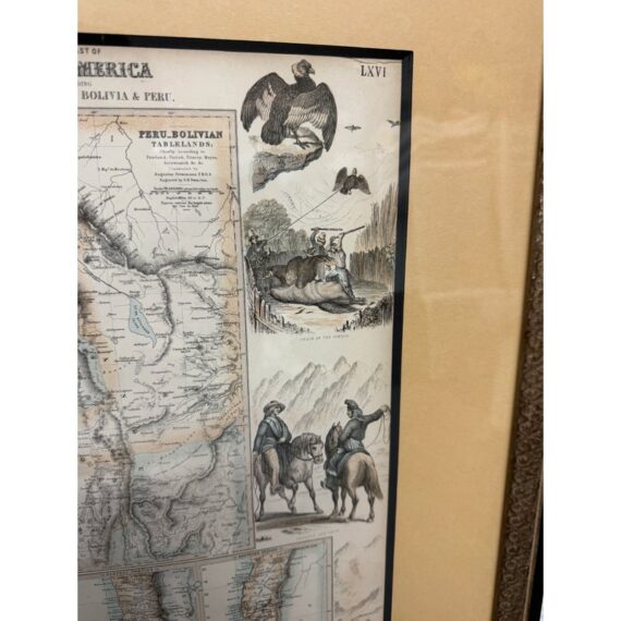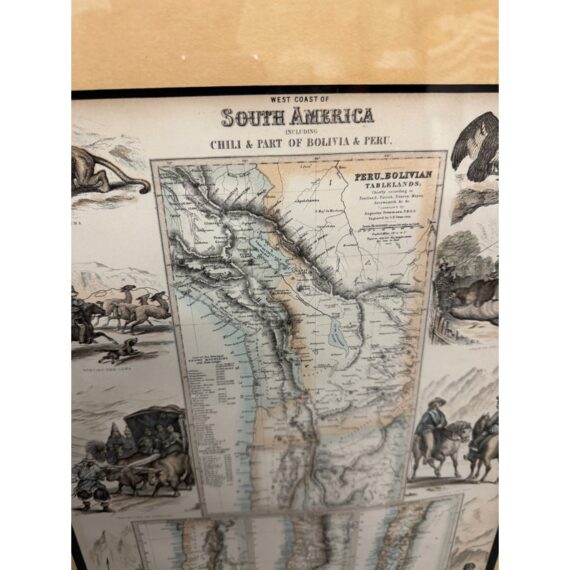 Design Plus Gallery presents a Circa 1860 West Coast of South America Original Antique Print. This is in etching on steel engraving with original hand coloring that depicts the west coast of South America.This includes Chili, Peru, and part of Bolivia. It includes scenes of various aspect of life in this separate countries. In good condition, visible and minimal wear from usage.