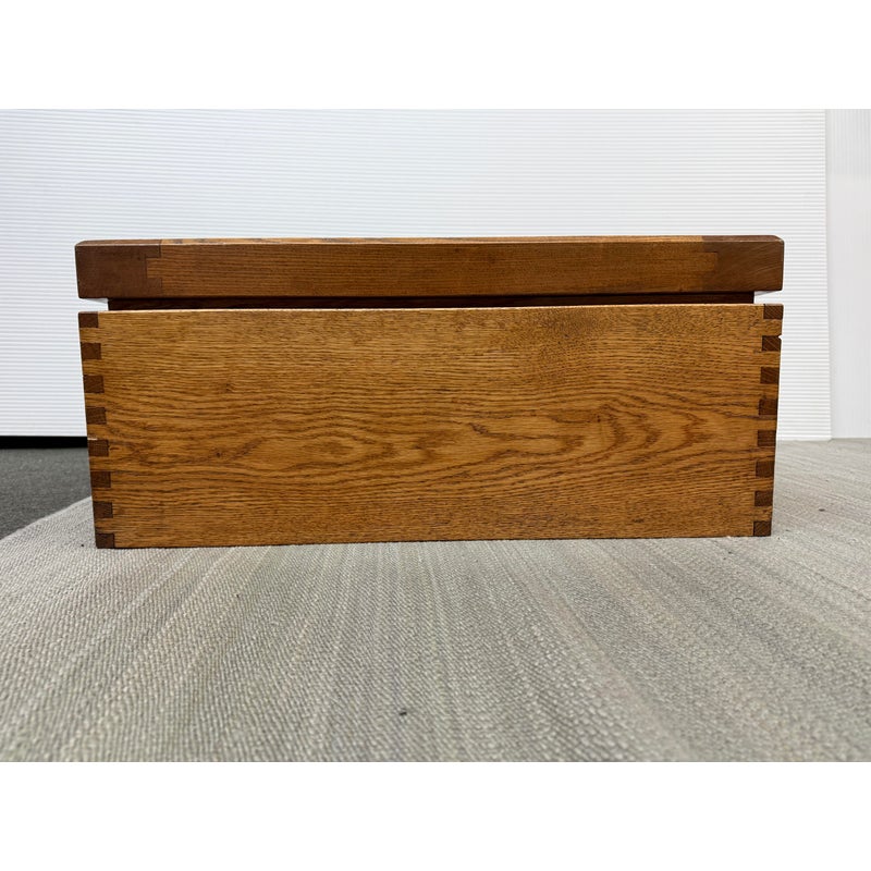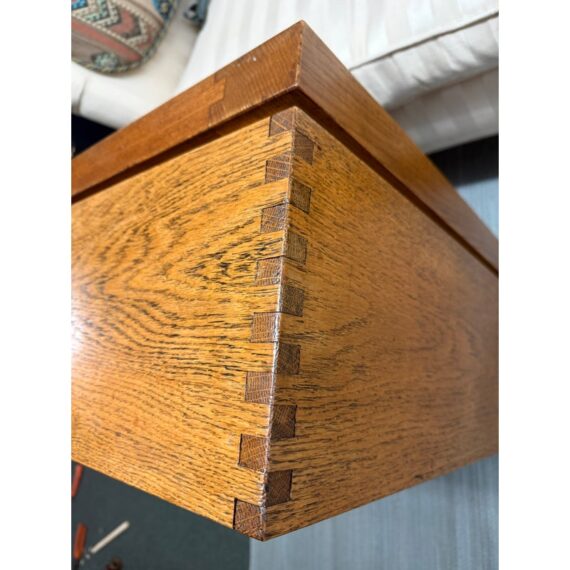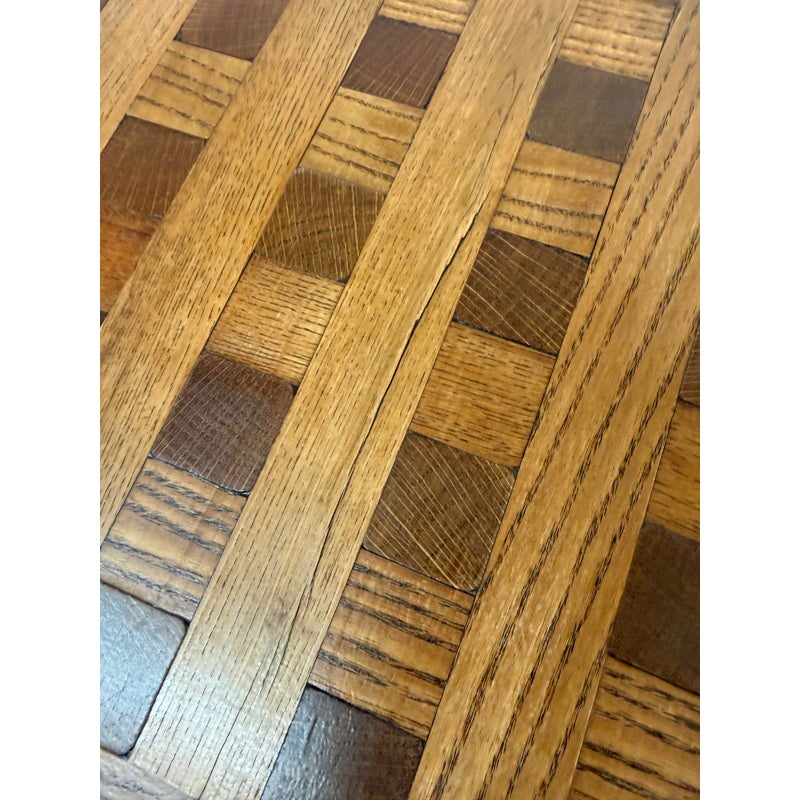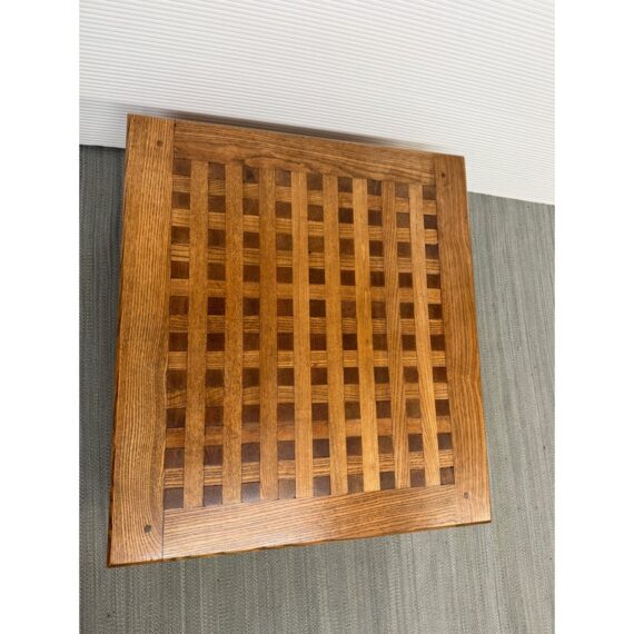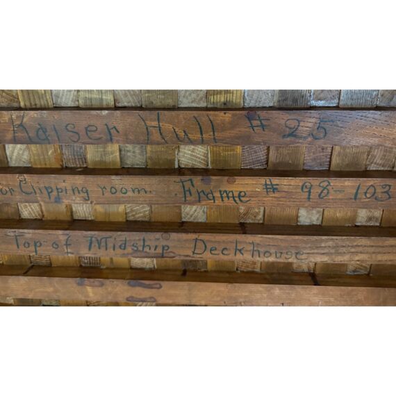 Design Plus Gallery presents a Coffee or Side Table from the Deckhouse of a the T2 Tanker Lake Champlain by the Kaiser Hull. What a great table for the seafarer in your life because the love of the open seas will never leave you, so why not put your feet up on an original piece of a ships frame. It is versatile so even if you are scared of the ocean this can be a good table for you with its nifty checkerboard pattern with dovetailed joinery on its side and angles. The piece is in good condition with an inscription on the underside that will authenticate your purchase.