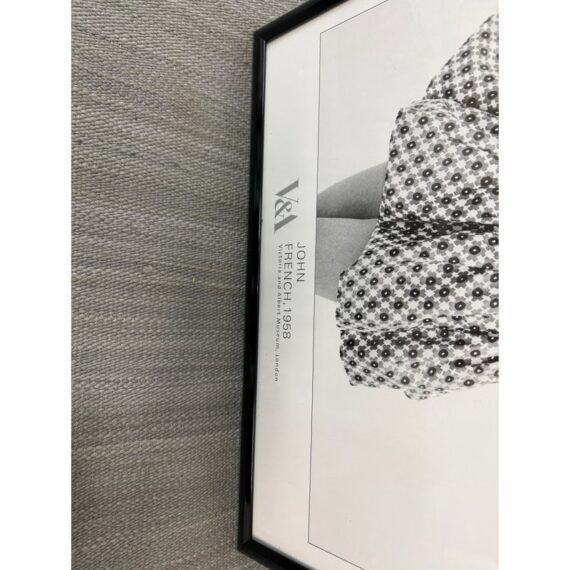 Design Plus Gallery presents the Museum Poster Print Entitled “Sunsuit” by Artist John French. John French (1907-1966) was an English fashion and portrait photographer. Originally trained as a commercial artist, French went on to set up his own photographic studio in 1948. French devoted much attention to the set and posing of his models and left the actual triggering of the shutter to assistants, including Terence Donovan and David Bailey. Using natural light and low contrast, French pioneered a new form of fashion photography, perfectly suited for reproduction in newsprint. Produced in collaboration with the Victoria & Albert Museum in London. It is in good condition for its usage with minimal surface wear.