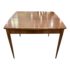 Design Plus Gallery presents a mid century modern dining table by Extensole. Perfect for a small space that needs to expand for entertaining, the petite table grows with each of the four leafs. Fully extended, a support leg drops down for stability. Made in the USA with American ingenuity. Circa 1959.