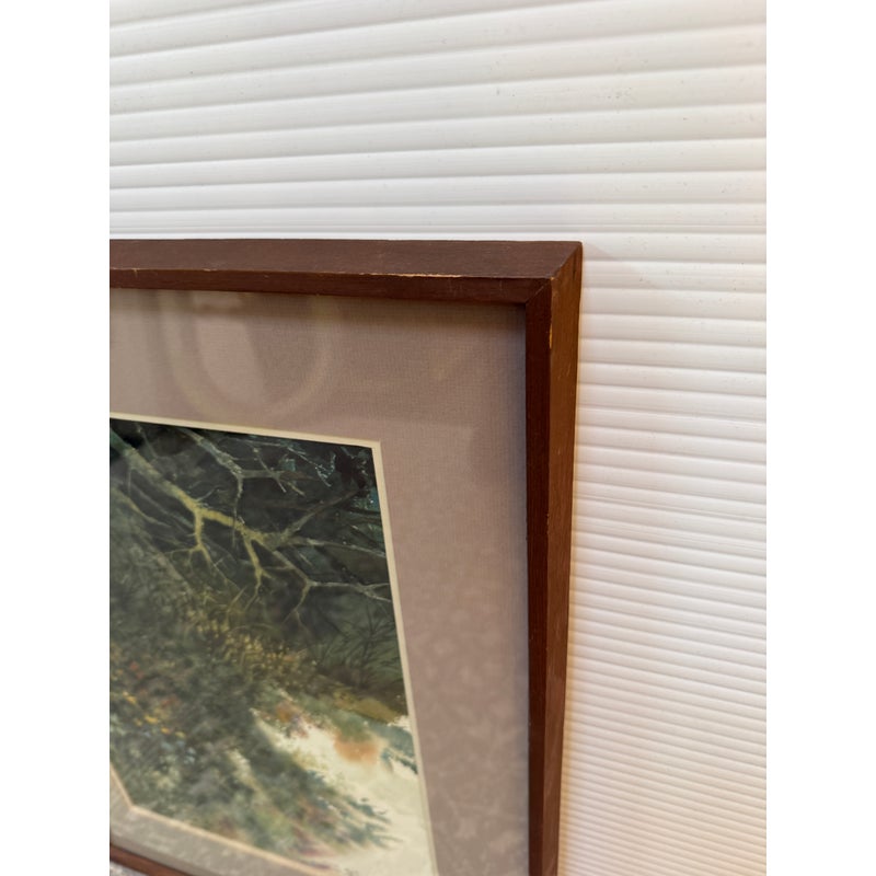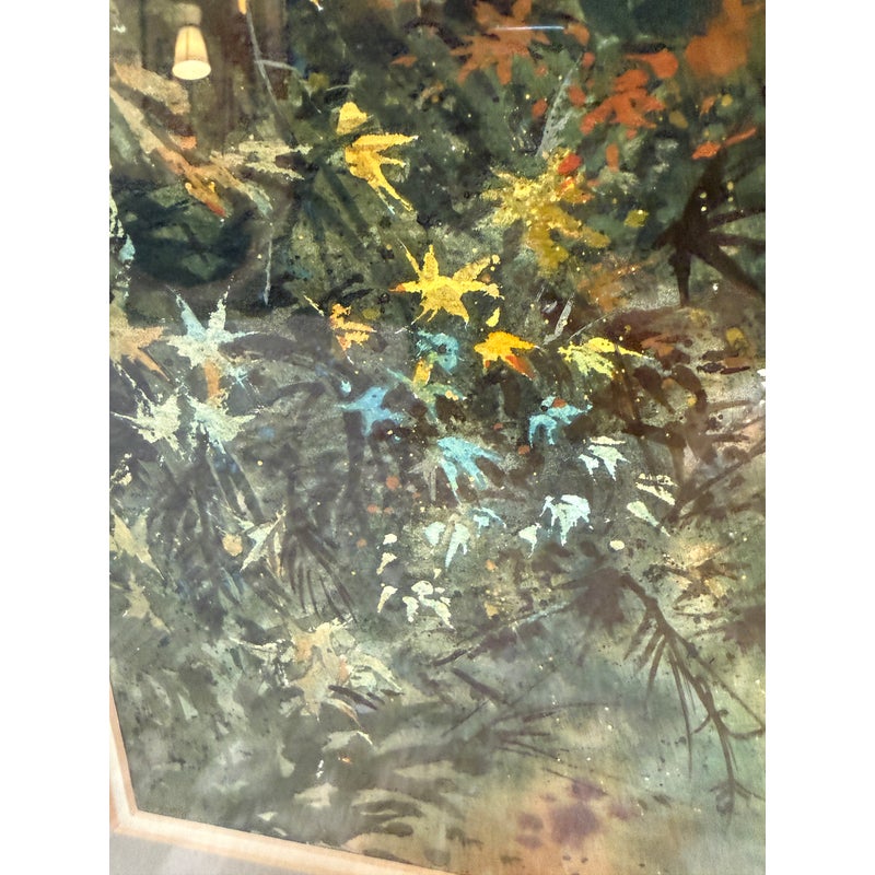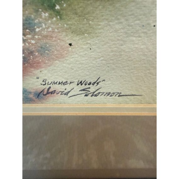 Design Plus Gallery presents “Summer Woods” an Original Watercolor Painting by David Solomon, 1972. The artist is a Mexican-American artist born in 1943, known for his watercolor creations painted on textured paper. A stunningly detailed tableau that speaks to the coolness of a tree filled glade in the heat of summer. Professionally matted and framed and protected under glass. Light damage on back paper; good condition otherwise.