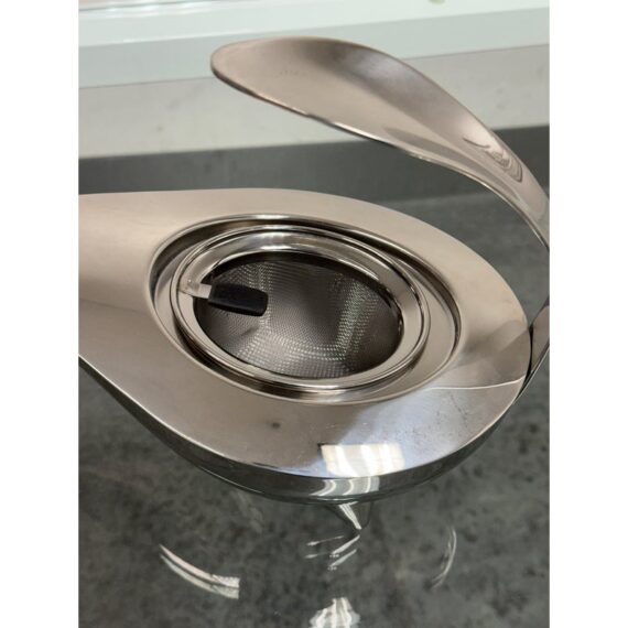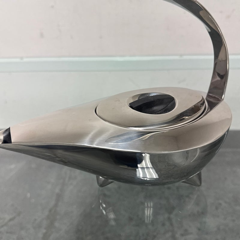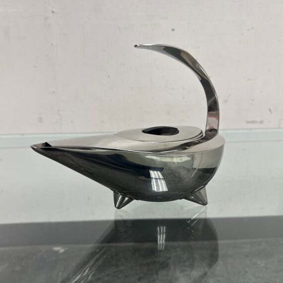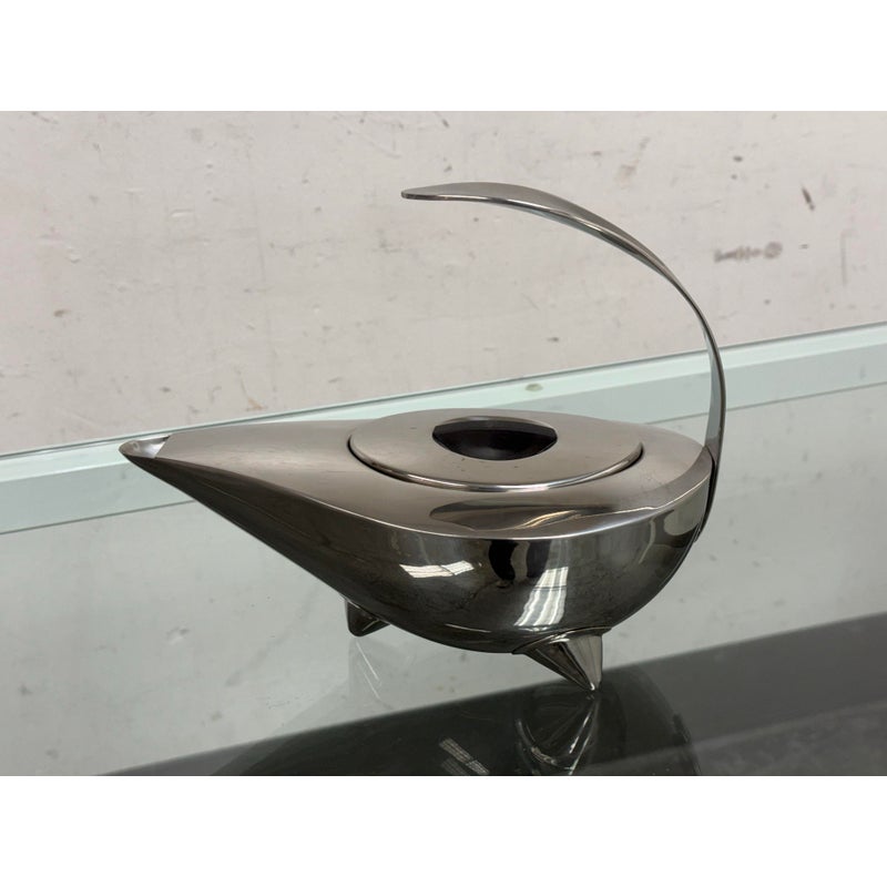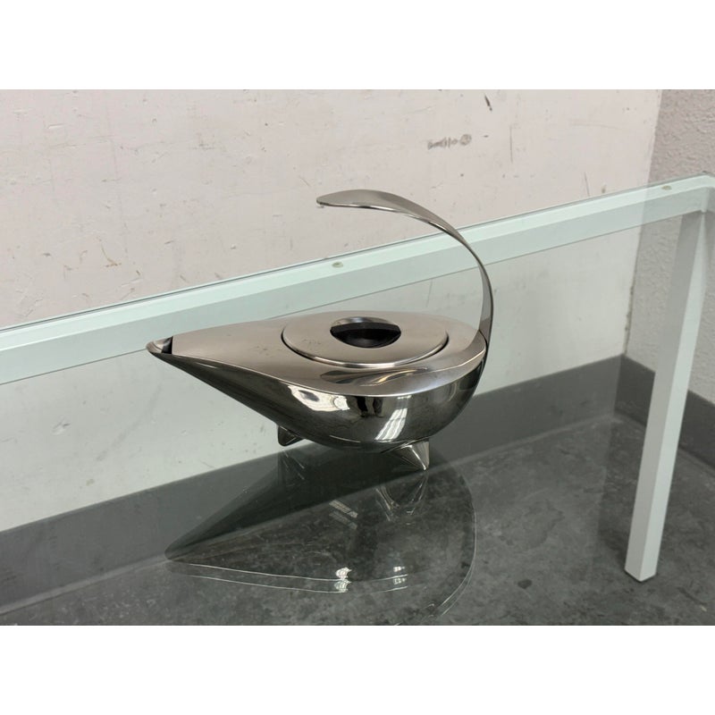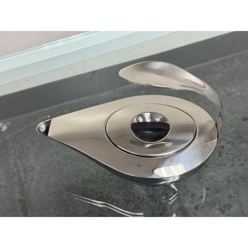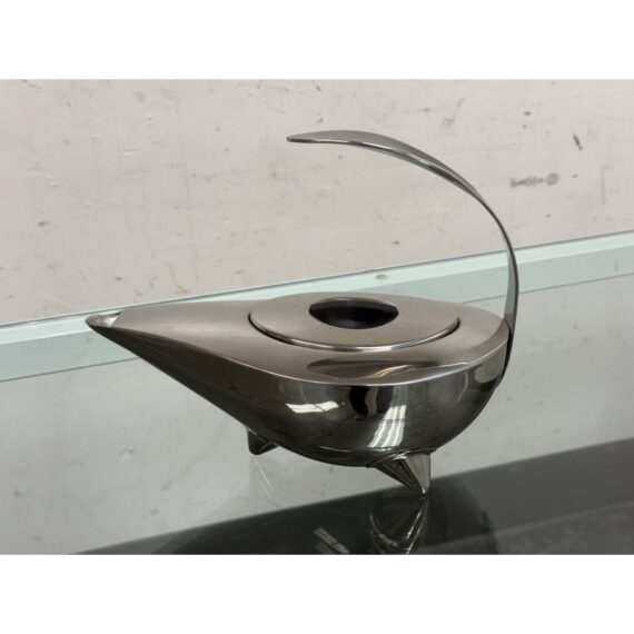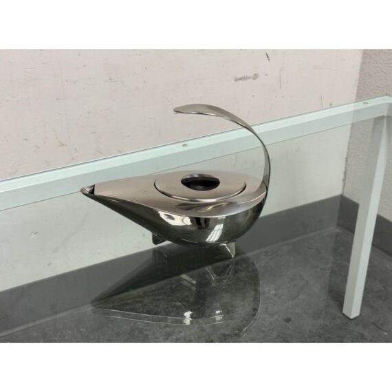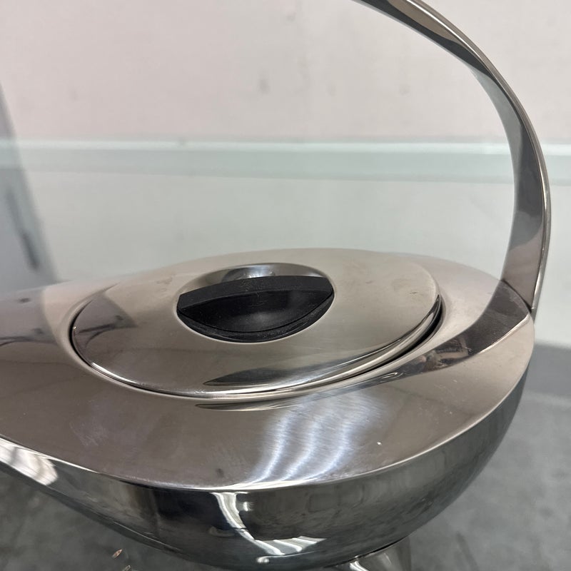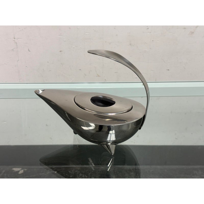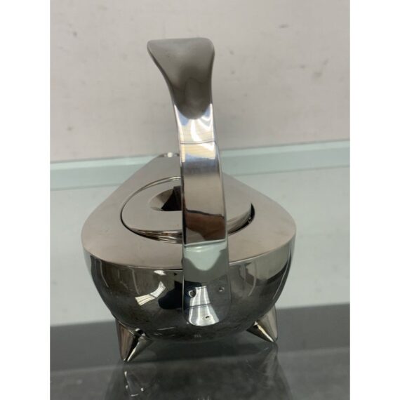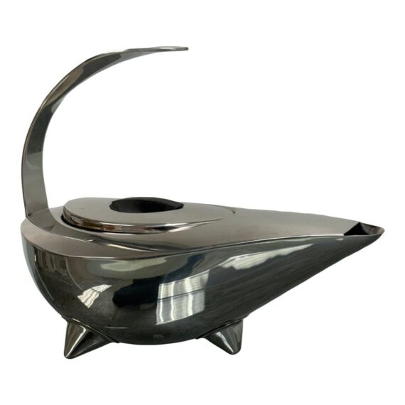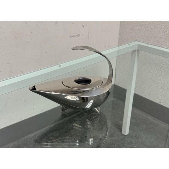 Design Plus Gallery presents the Circa 1980’s Naoko Stainless Steel Kettle from Bodum. Designed by Carsten Jørgensen. The kettle is so cool with its look like a genie lamp, rub it and make a wish. Or just that the water will be boiling, but you never know. It has the brand etched to the bottom. It is in good condition for its age + use. Made in Denmark.