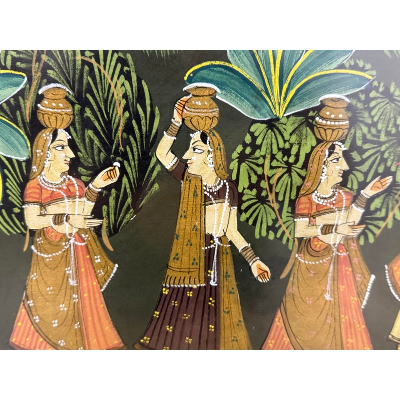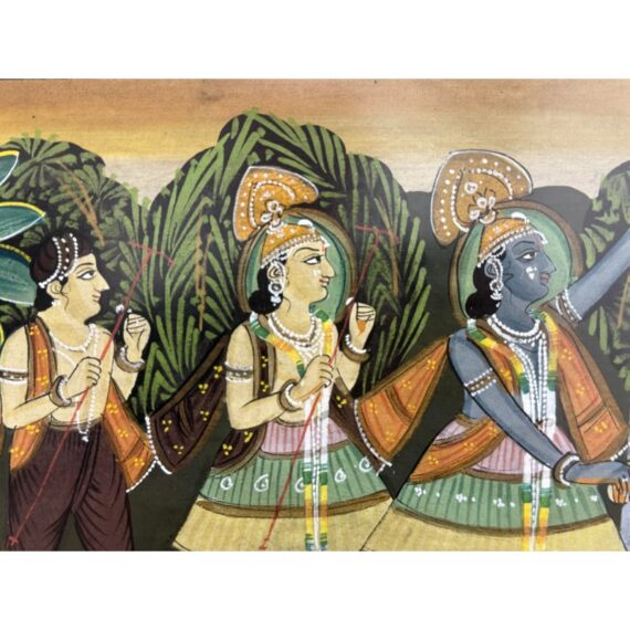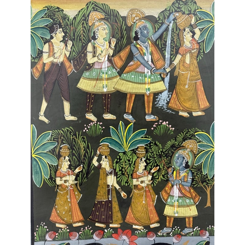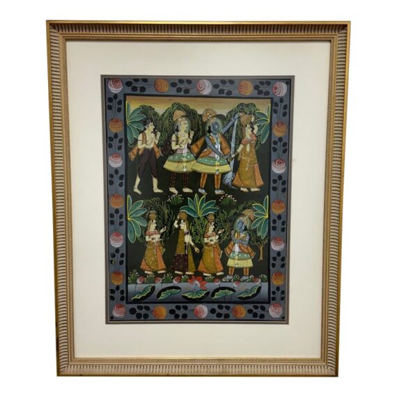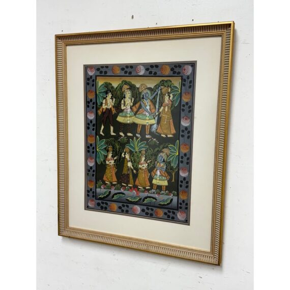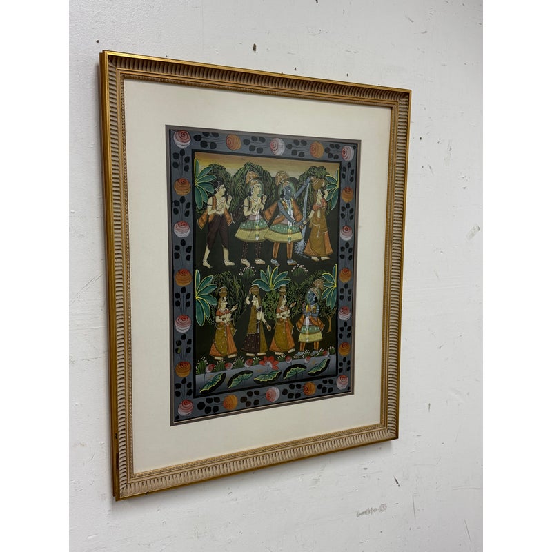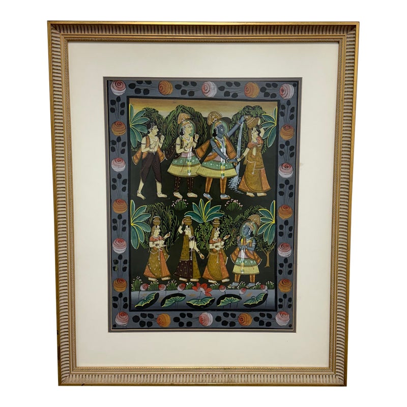 Design Plus Gallery presents a Lovingly Made Lithograph from New Dehli in 1988. The picture portrays a ceremony depicting the Hindu divinity Krishna with his immortal queen consorts. Was professionally framed and mounted. In good condition for its age + use.