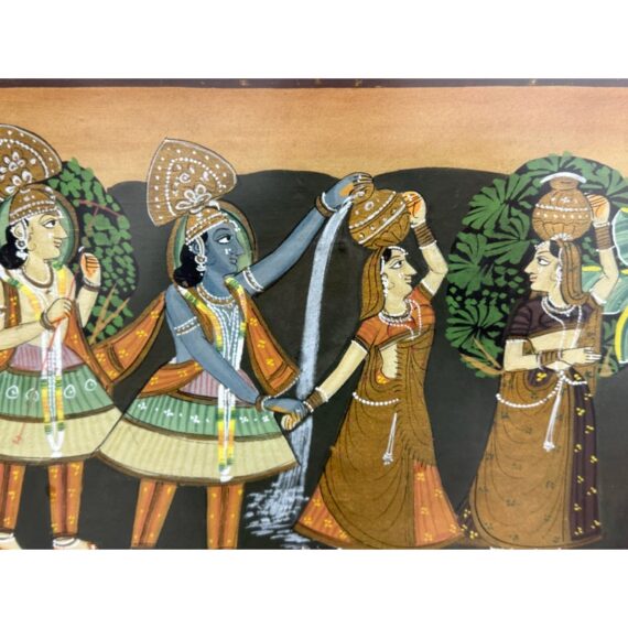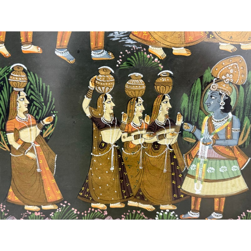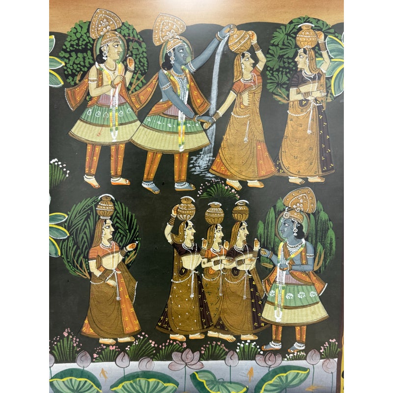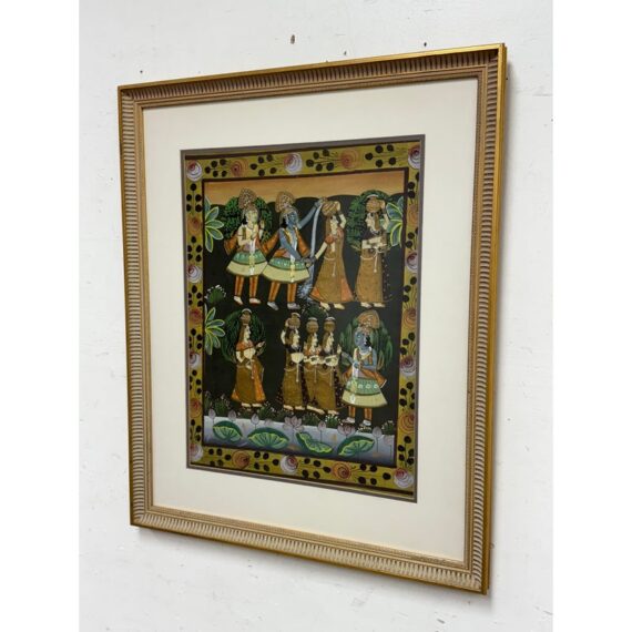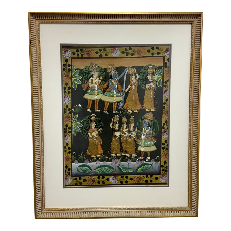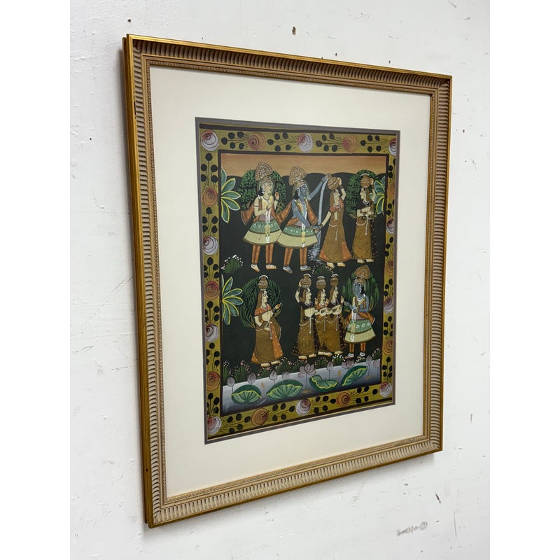 Design Plus Gallery presents a Lovingly Made Lithograph from New Dehli in 1988. The picture portrays Lord Krishna with hopis depicting the Raas Leela, dance of the divine. Was professionally framed and mounted. In good condition for its age + use.