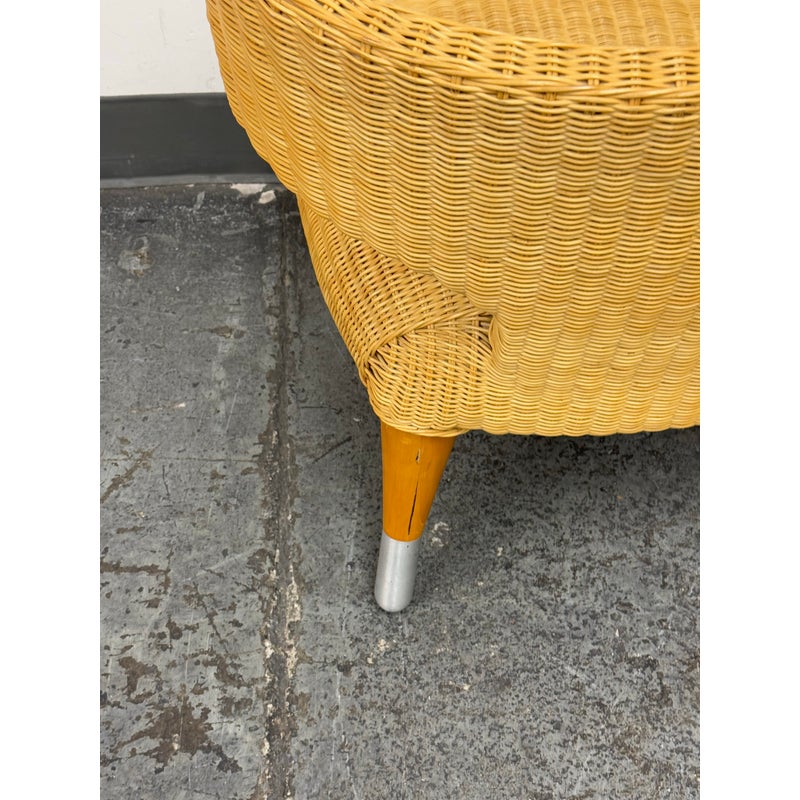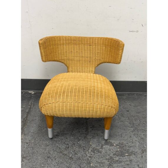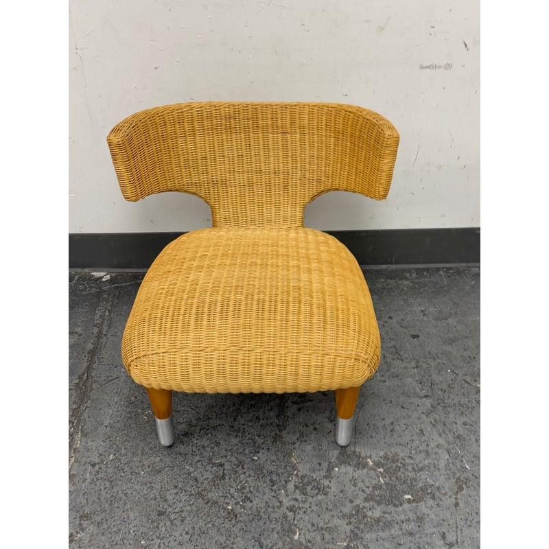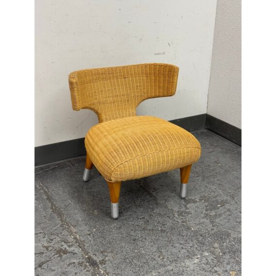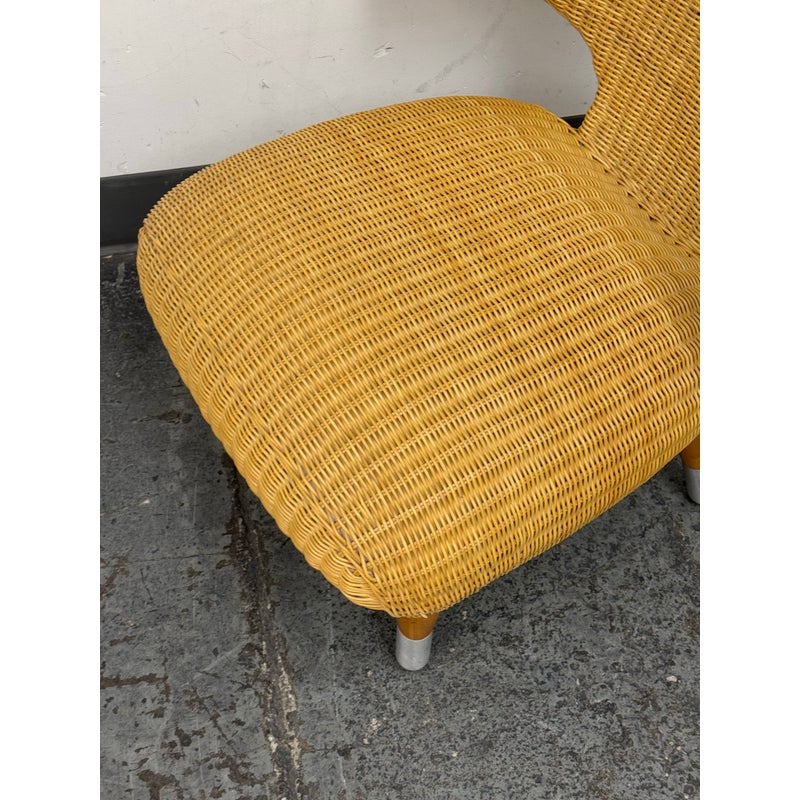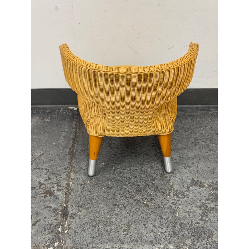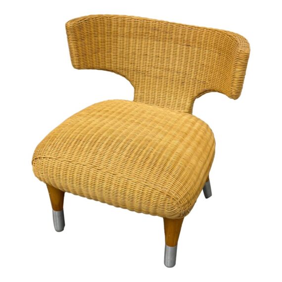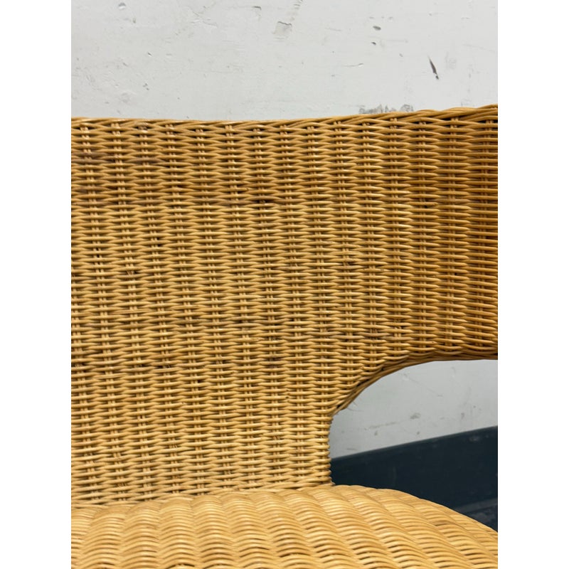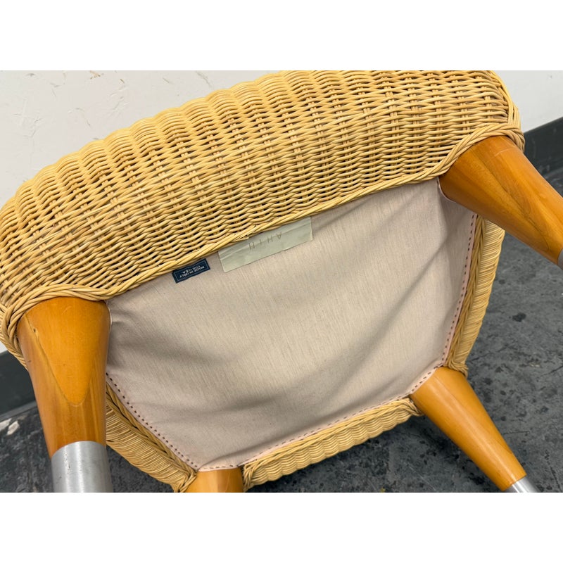 Design Plus Gallery presents a Vintage B&B Italia Klismos Lounge Chair. The Series Compagnia Delle Filipino. Woven rattan with aluminum end of tapered leg caps. Chair is out of design production and is from the Mid 1990s. Is in good condition for their vintage age with minimal wear for its usage. Made in Italy.