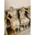 Design Plus Gallery presents a “The Waiting” Sculpture from Artist Betty Defuntorum. A figurative, expressive sculpture portraying five seated travelers on a bench, their bodies angled inward and outward in quiet anticipation. Luggage clustered beside several figures and their reserved postures suggest a station setting—perhaps a train or bus depot—where time is measured in departures and delays. The work is marked “DIFUNTORUM” on the reverse. Modeled with an emphasis on gesture over fine facial detail, the figures wear vintage coats, hats, and dresses that evoke a mid-20th-century era (circa 1930s–1950s). The bench and base carry a carved wood grain that grounds the scene in a specific place. Balancing individuality and anonymity, Difuntorum composes a shared moment of stillness: five lives briefly aligned on a single bench. The sculpture quietly explores themes of travel, migration, patience, and the fragile community formed by strangers who wait together. In good condition, visible and minimal wear, repairs were done. Crafted in California, USA.