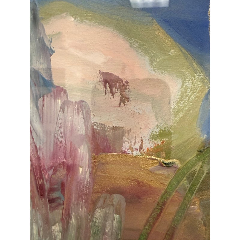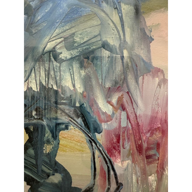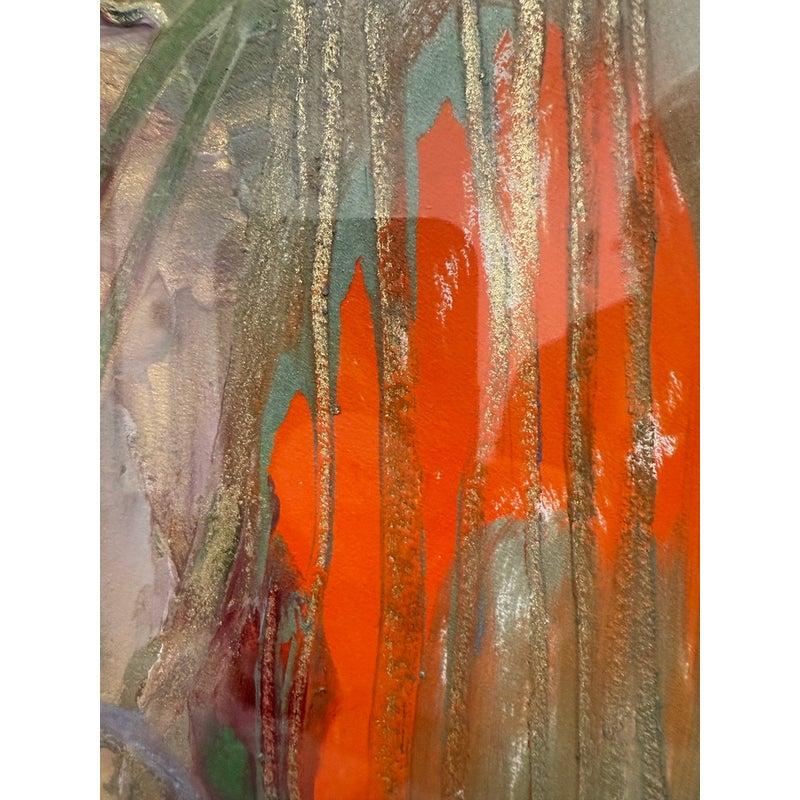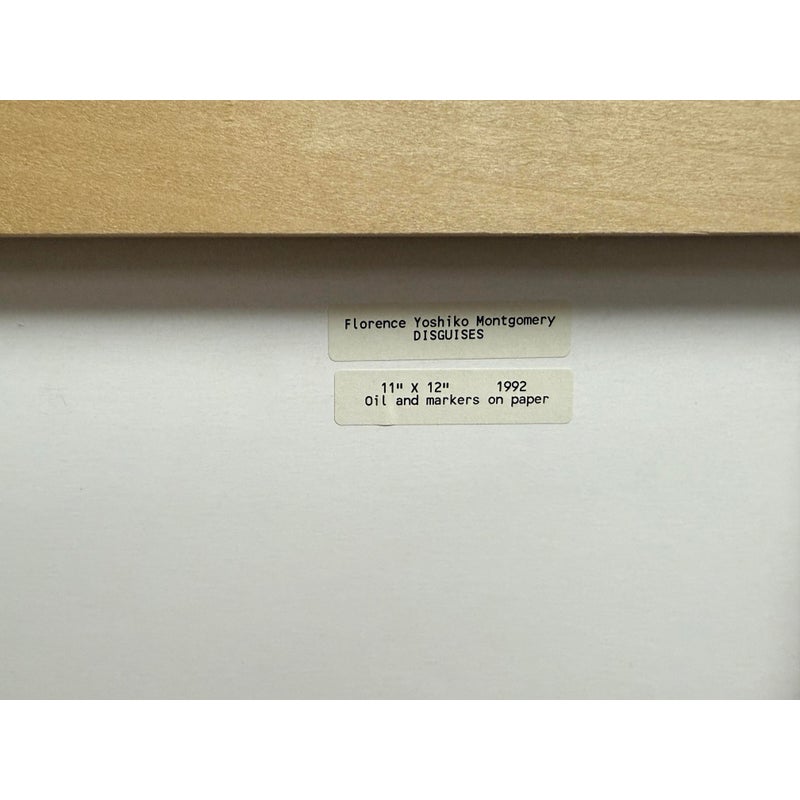 Design Plus Gallery presents an Original Artwork by Florence Yoshiko Montgomery Titled “Disguises”. A vintage artwork from 1992, Disguises is a harmonious displays oil + marker on paper is a blending of colors and techniques. Signed lower right side with initials FYM. Is in good condition for its age + use.