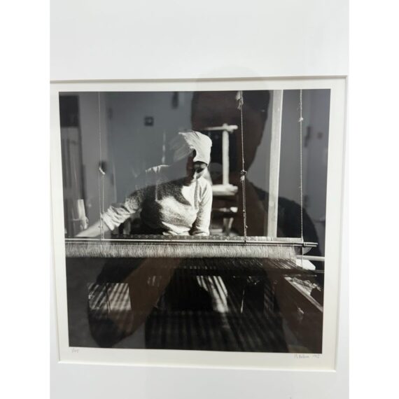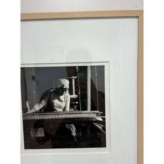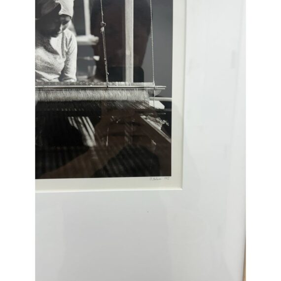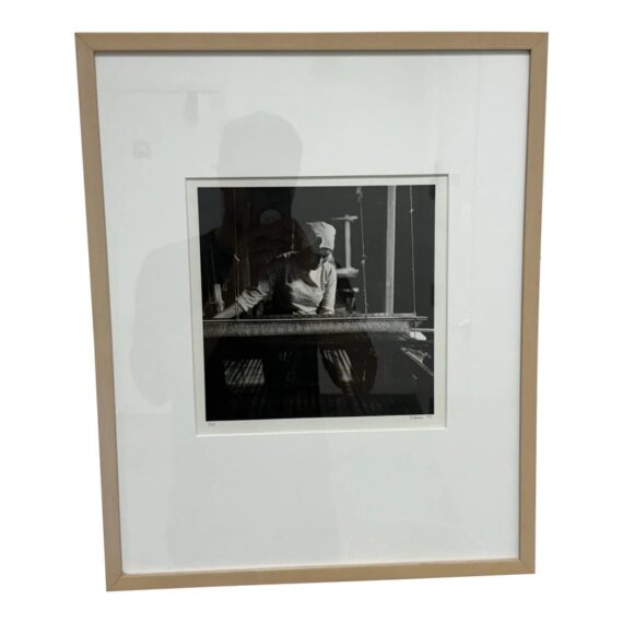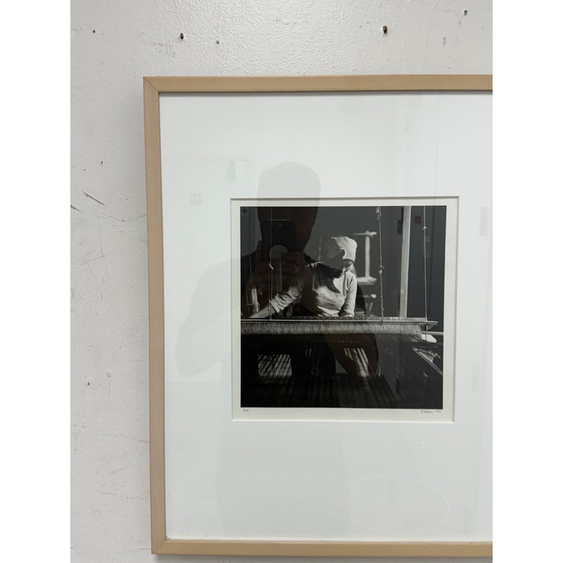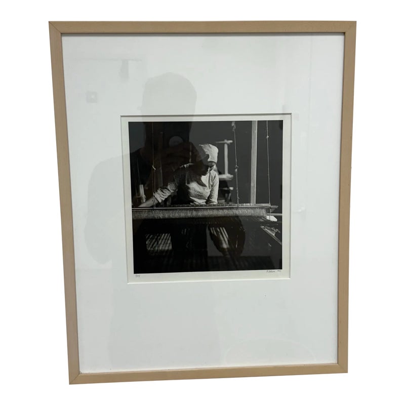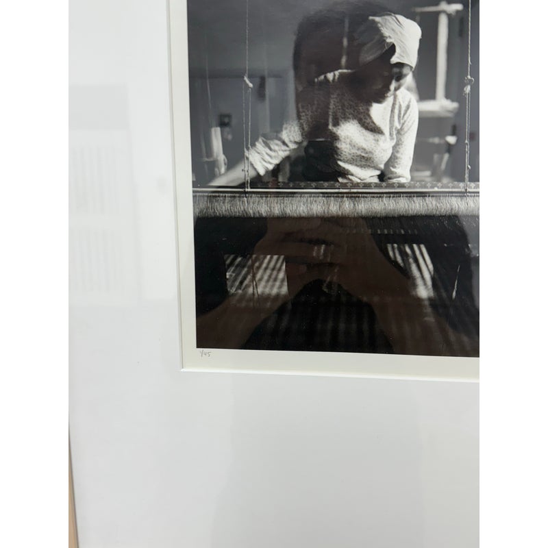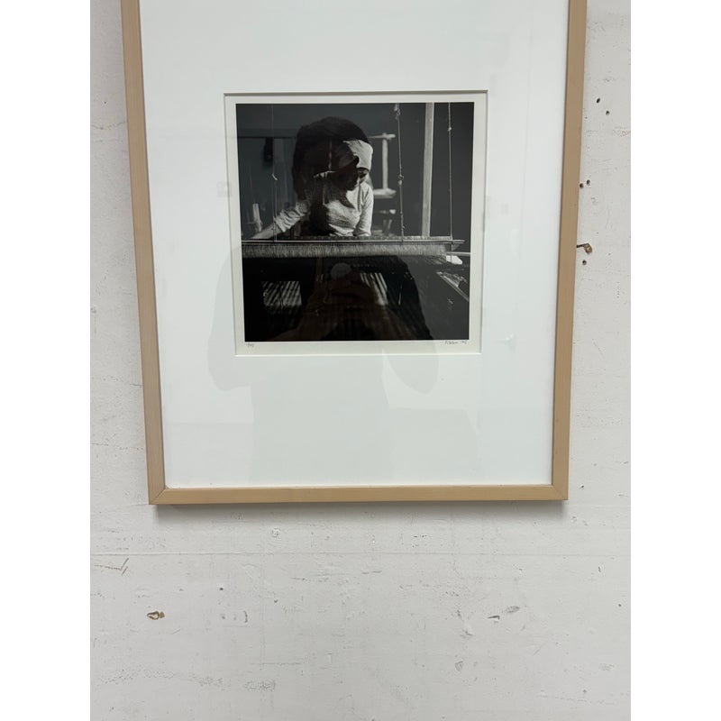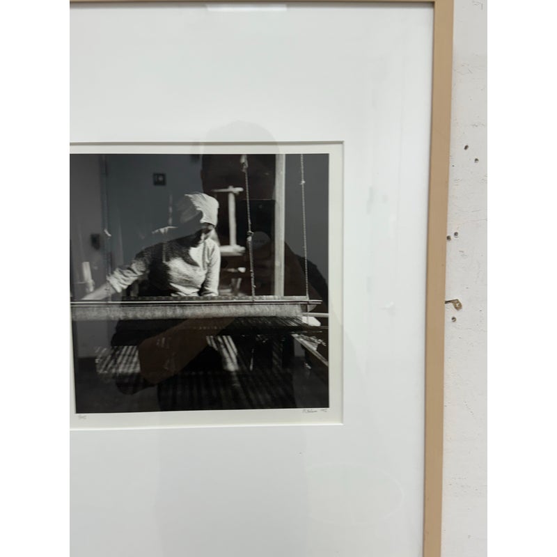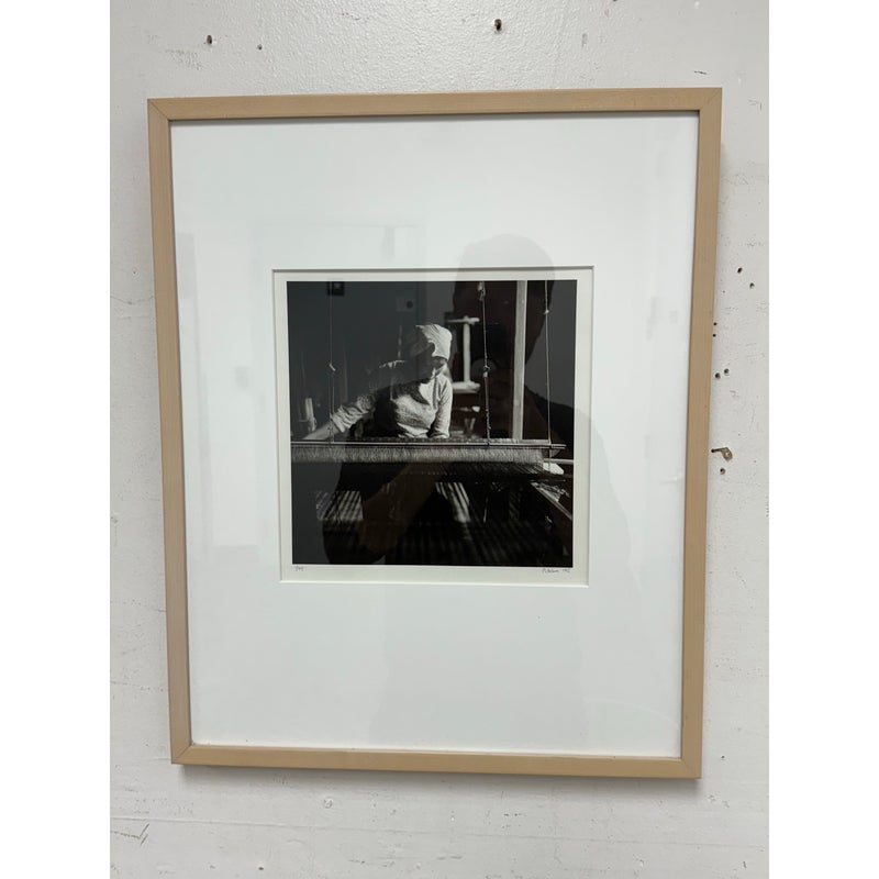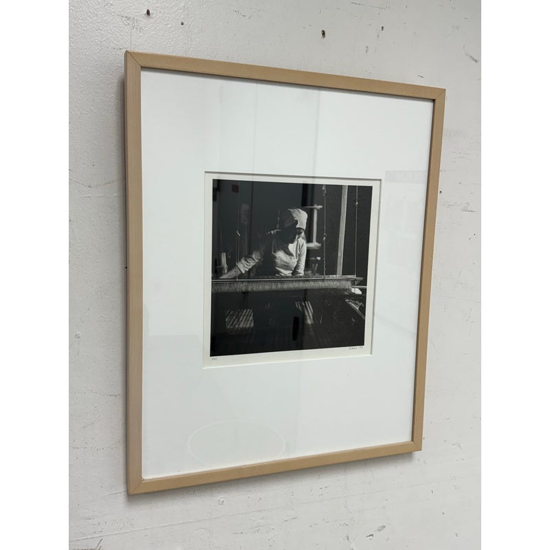 Design Plus Gallery presents a Limited Edition Print by Northern California Photographer Reid Yalom. The image in black + white shows a woman with glancing down at her weaving project. The composition is a powerful message that can be taken to differing perspectives. Reid’s work has developed using elements of both photojournalism used in an artistic narrative sense and the more classical usage of finely printed still landscape. The print, although untitled, is 1 of 45 with his signature and the year it was produced. Professionally framed + thoughtfully mounted with matte. Is in good condition with minimal wear for its vintage age + use.