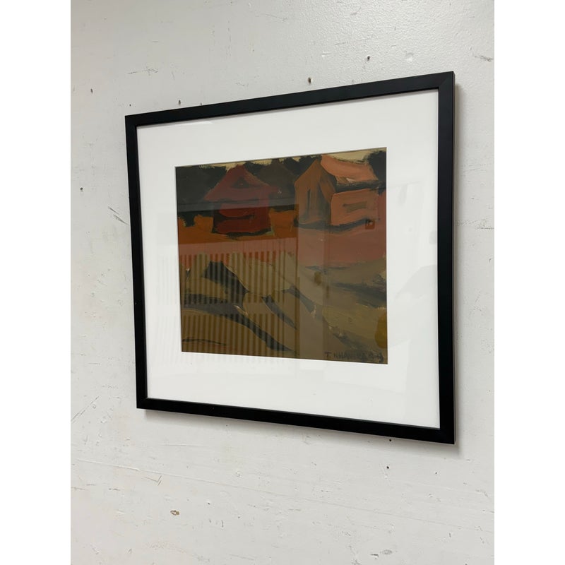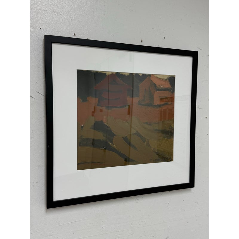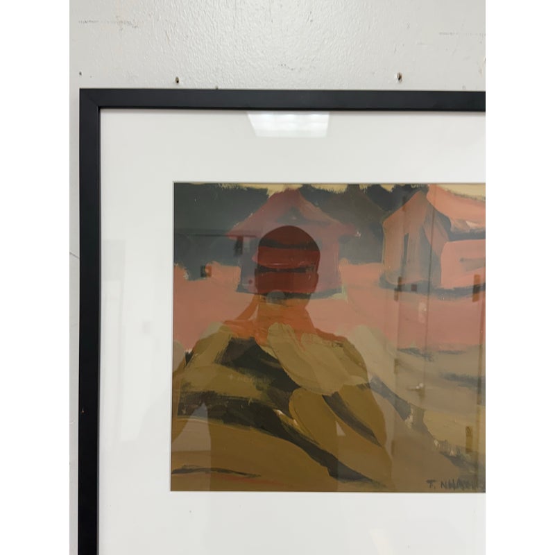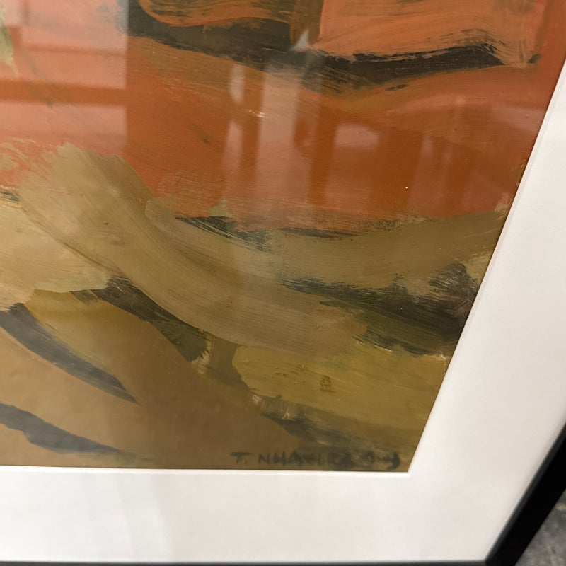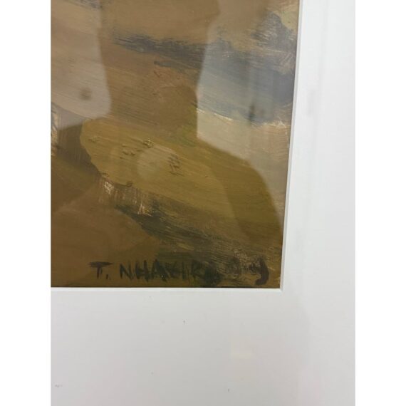 Design Plus Gallery presents a Zimbabwean Artist Tendai Nhavira’s Original Artwork from 1999, Signed + Dated from Artvark Gallery. The art piece has thick, broad oil paint brush strokes on canvas of a village setting in rural Africa. The artist has signed + dated ’99 on the lower right corner. The piece has been professionally framed + is in good condition for its usage.