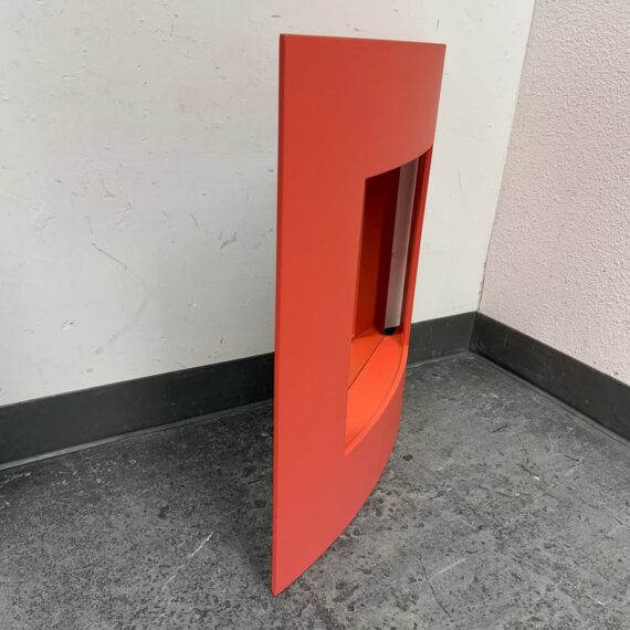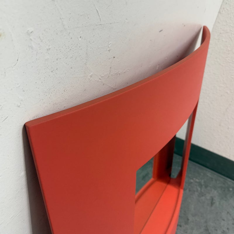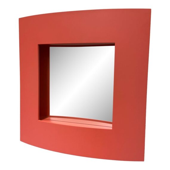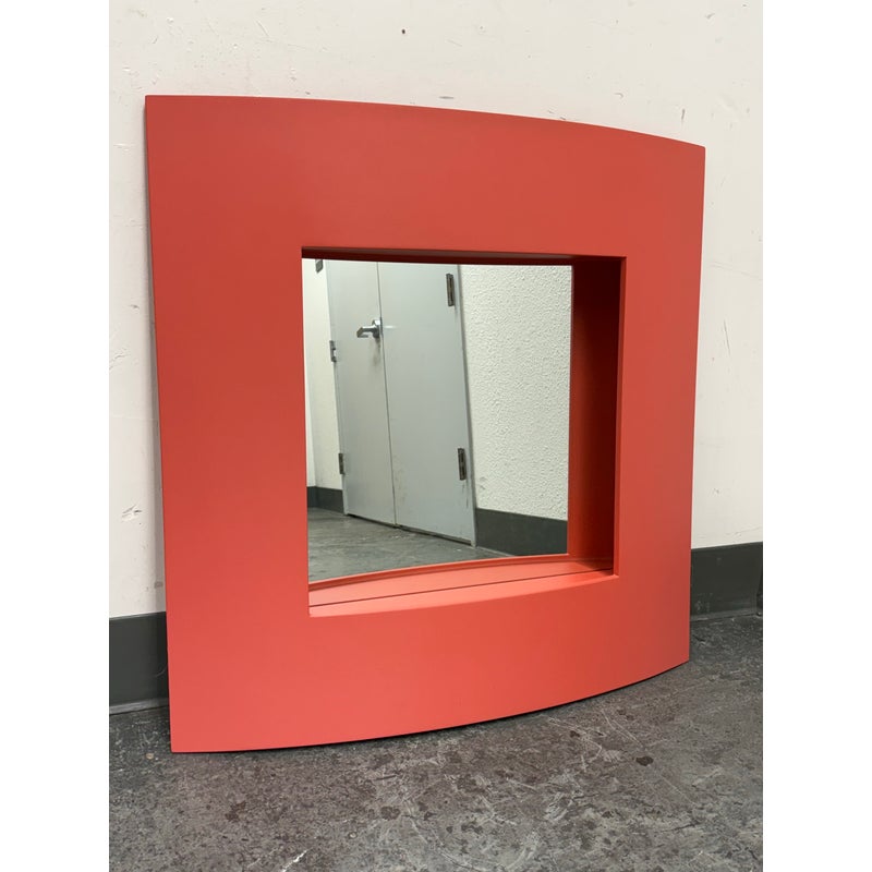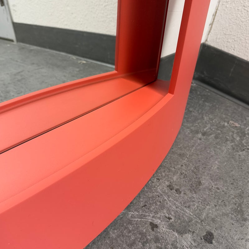 Design Plus Gallery presents a Circa 2001 Custom Orange Framed Mirror + Integrated Shelf by Morphos. Designed by Joanna Lyle. Crafted with a molded plastic in a soft orange finish. In good condition, minimal wear from usage. This is a discontinued model. Made in Italy.