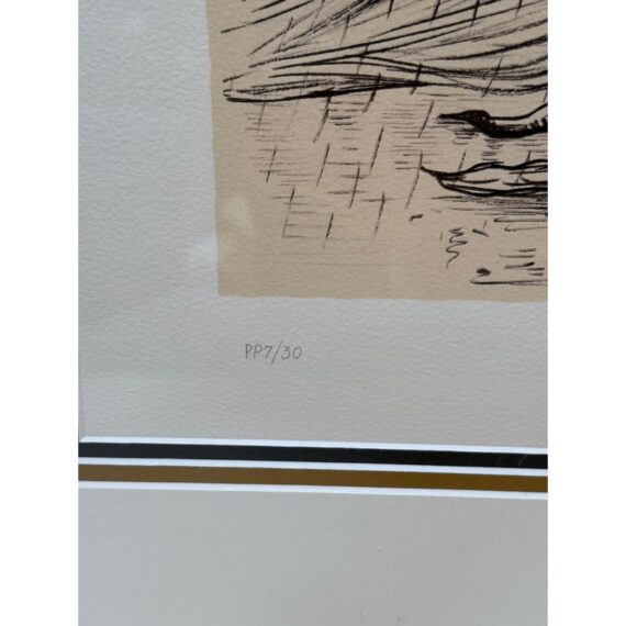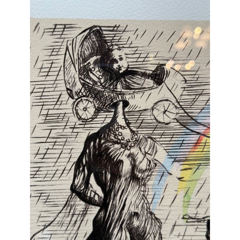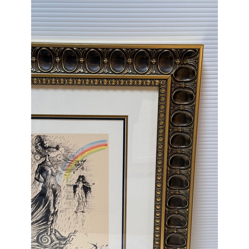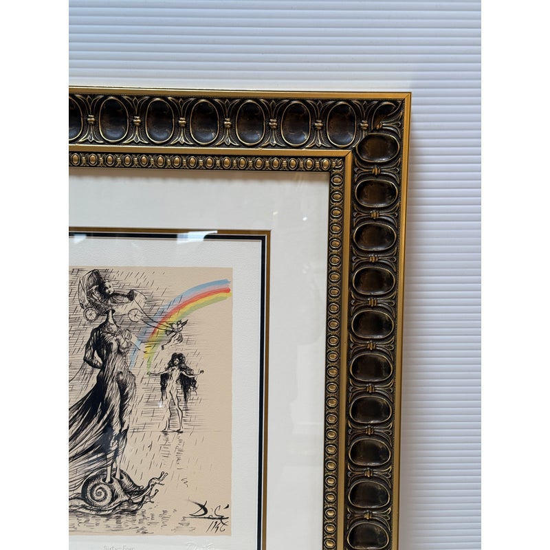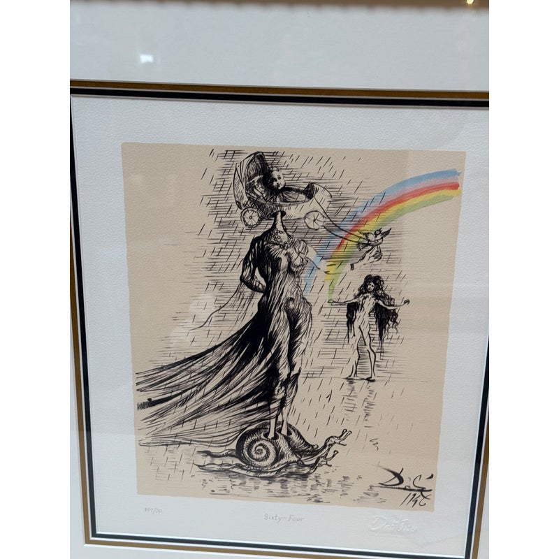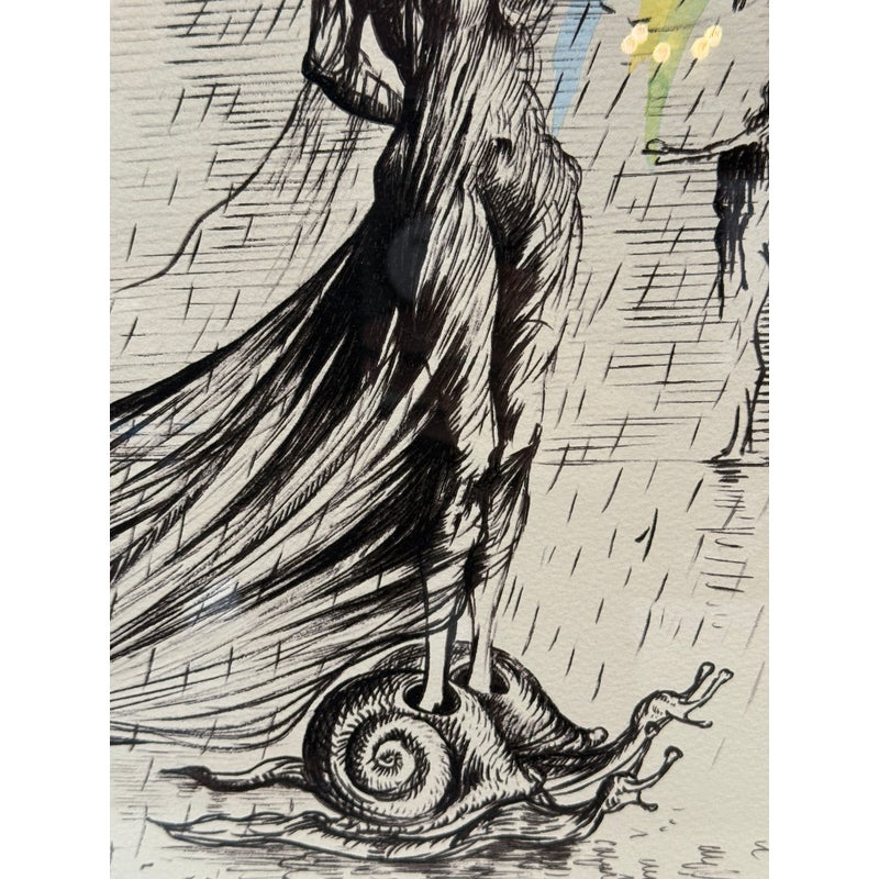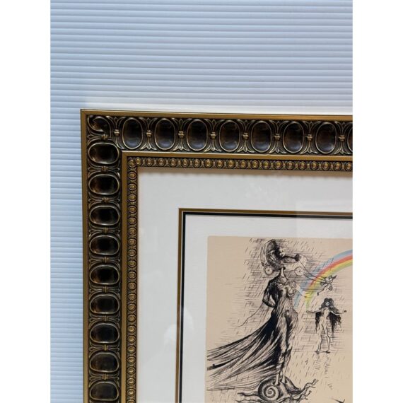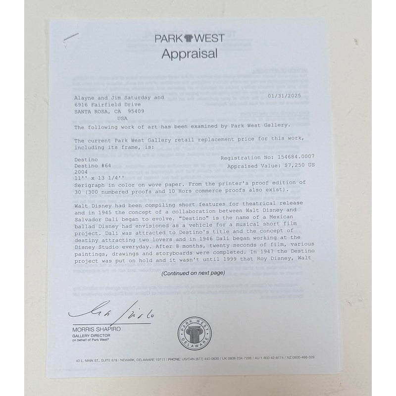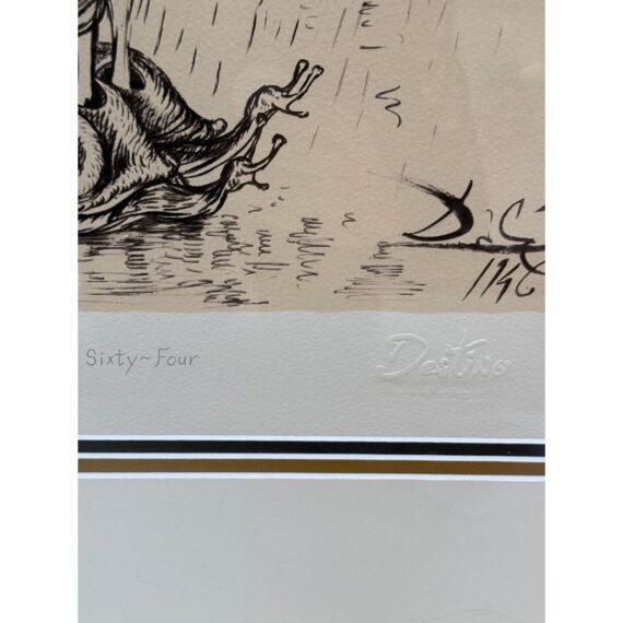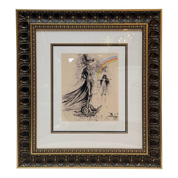 Design Plus Gallery presents “Destino”, a Serigraph from the Collaboration of Walt Disney Studios + Salvador Dali in 1946. Destino is the name of a Mexican ballad Disney had envisioned as a vehicle for a musical short film project. Dali was attracted to Destino’s title and the concept of destiny attracting two lovers. In 1946, Salvador Dali began working at the Disney Studio every single day to make their now shared visual come to light. Unbeknownst to them, this was a project for the future and it took nearly five decades to get this onto the screen, in a format they would never have been able to conceive of in the beginnings of animation. This groundbreaking still comes with a certificate of appraisal and all pieces are in good condition for their age of release (2004) + use.