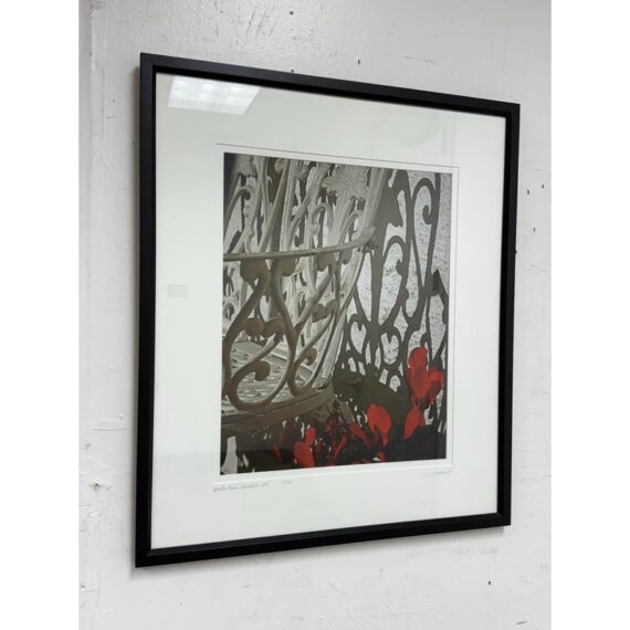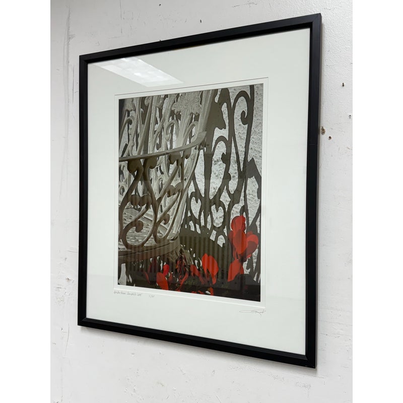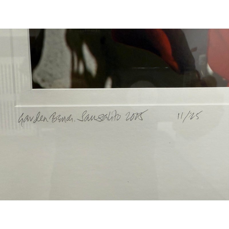 Design Plus Gallery presents a Circa 2005 Ravi Anand “Garden Bench, Sausalito” a framed archival chromogenic print, Ltd. Edition 11 of 15 is signed by artist. Professional matted and framed, condition is good. Visible and minimal wear on frame.