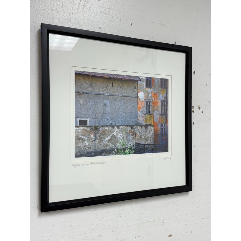 Design Plus Gallery presents a Signed Photograph Original Print by Ravi Anand Titled “Layers and Textures, Bratislava”. A framed archival chromogenic artist print, signed and titled in pencil by artist. Professional framed with matte, condition is good.