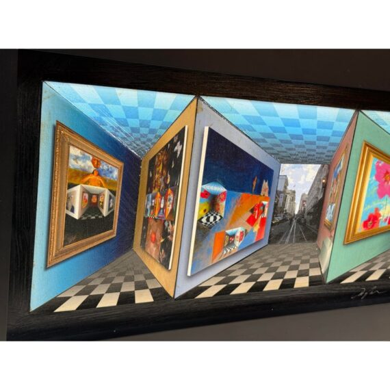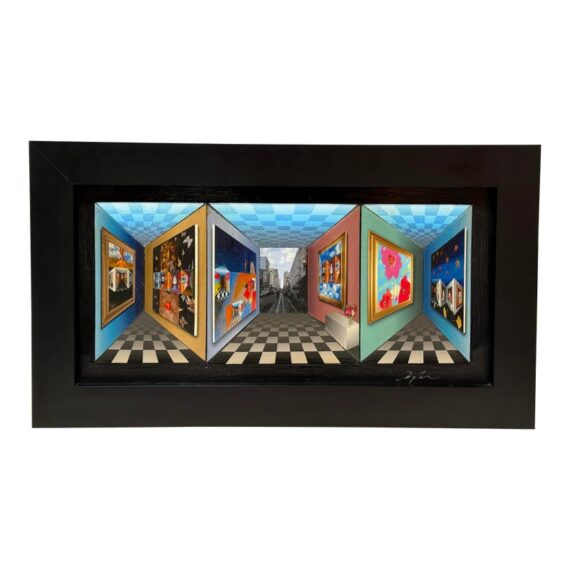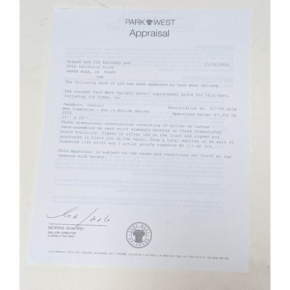 Design Plus Gallery presents New Dimension – Art in Motion by Dominic Pangborn. The art that appears to alter and shift as you move past it, like you are in an art gallery, this is so meta. Is in good condition with signature on the front lower right side, and COA on file.