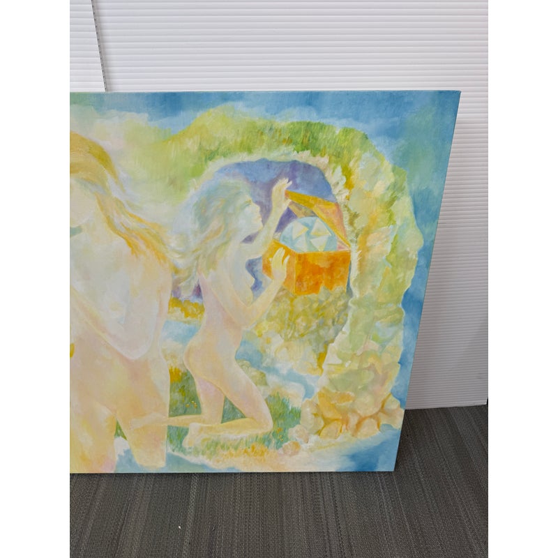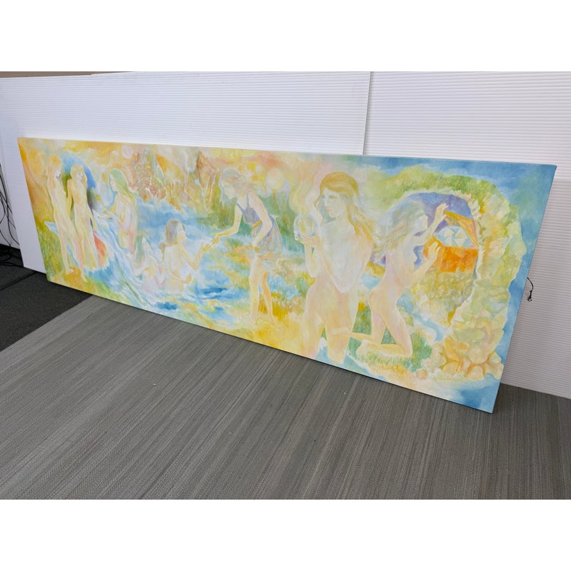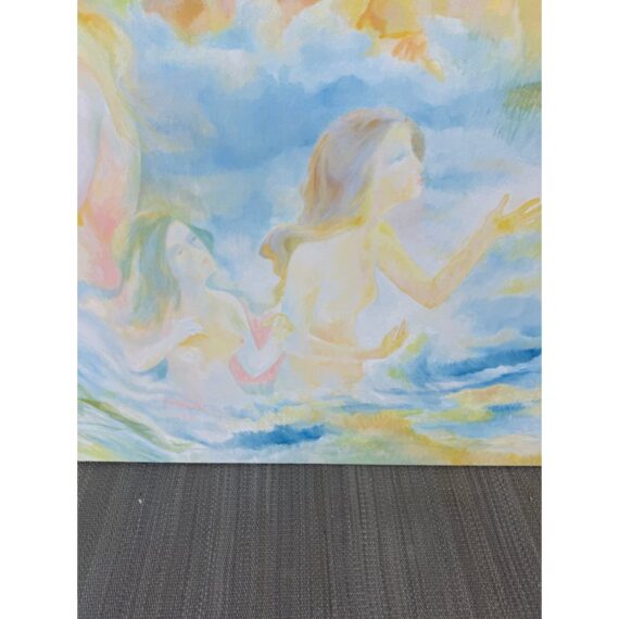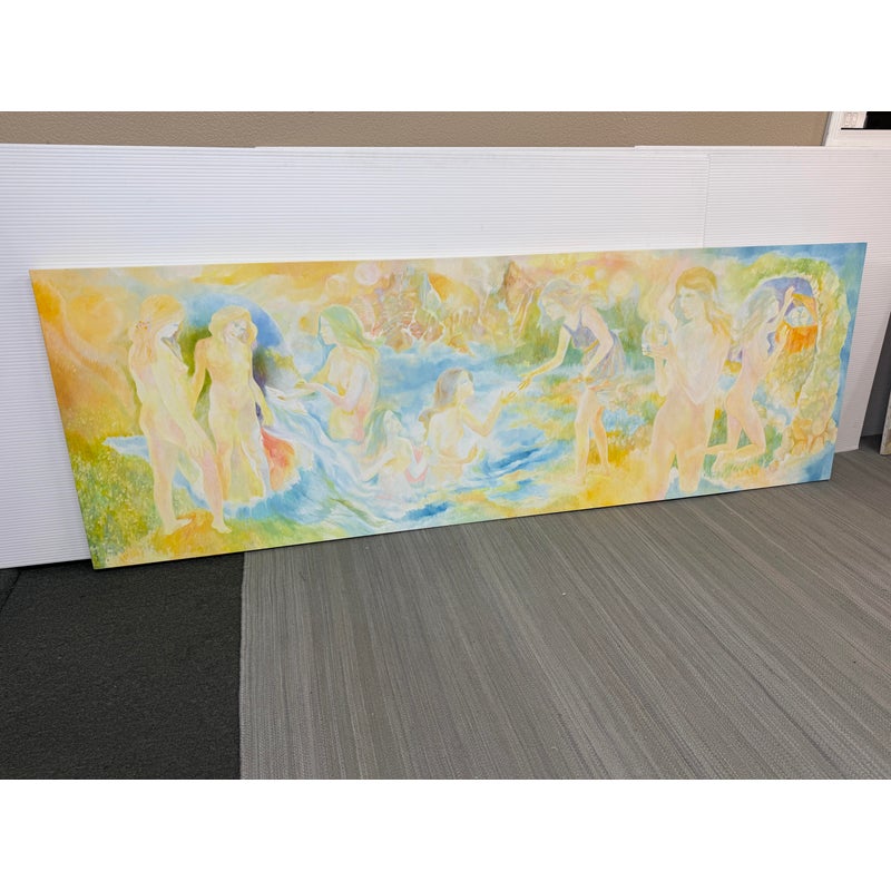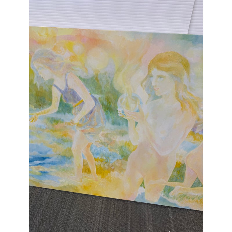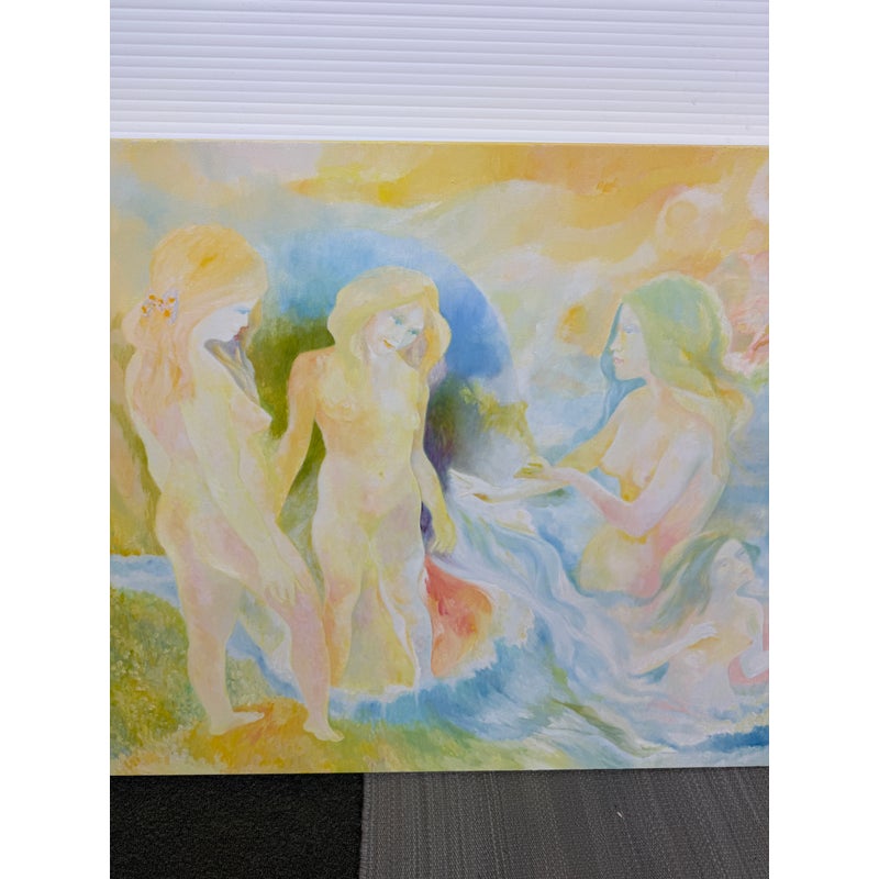 Design Plus Gallery presents an original artwork by Phillip Dizick. Vibrant in color and movement, this figural painting is gallery wrapped to highlight the scene. Condition is good.
