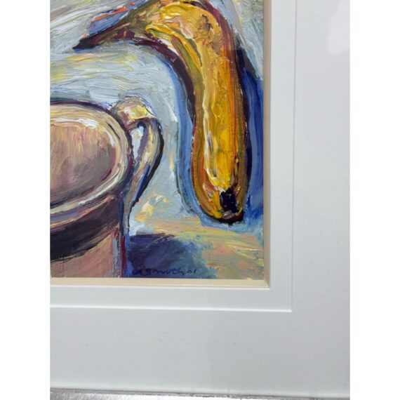 Design Plus Gallery presents a Circa 2011 Framed Abstract by Artist Albert Smith (1929-2008). Smith is a self-taught artist known for using color to circulate movement on his canvases, as seen in the vibrant color hues and dynamic lines of the image. The item it not titled as Smith intentionally left most of his artworks untitled to allow viewers their own interpretation. In good condition, minimal wear. Signed by Artist.