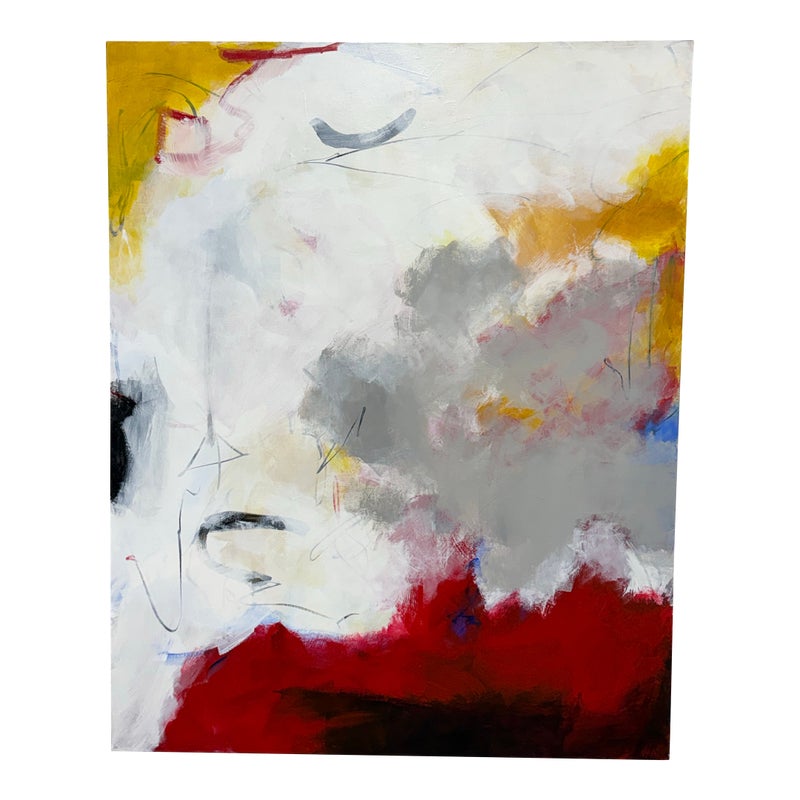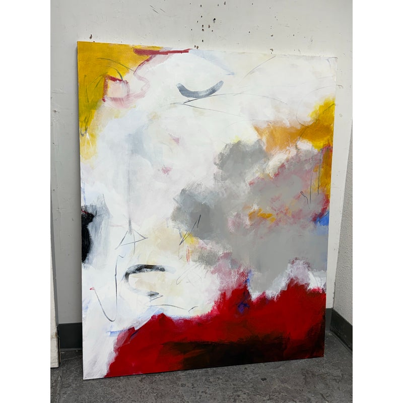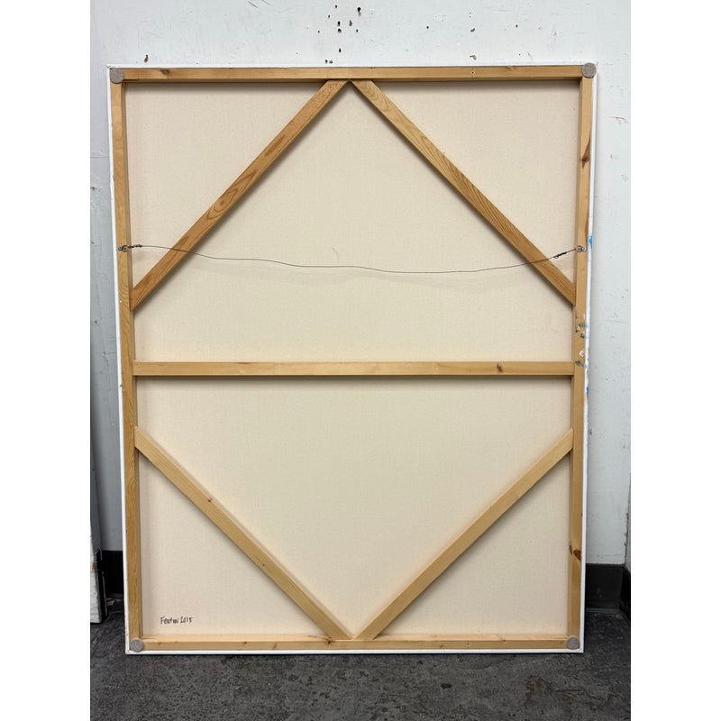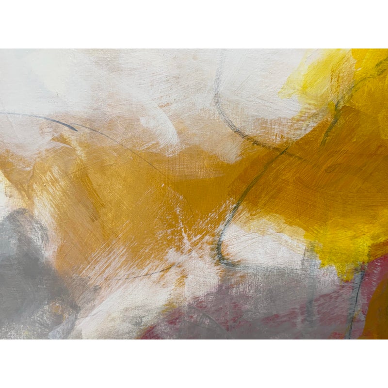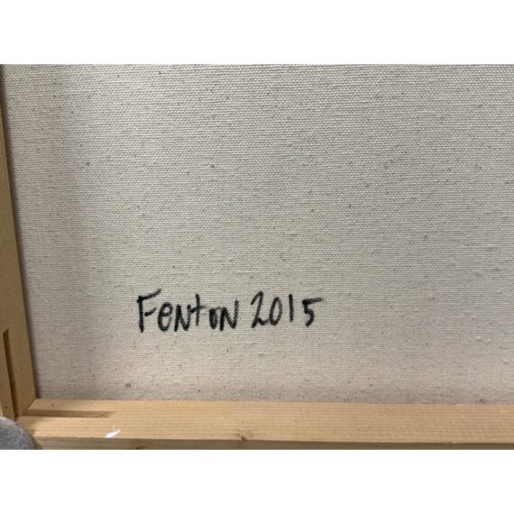 Design Plus Gallery presents an Original Untitled Abstract Painting by Artist John Fenton. Created in 2015, this large scale artwork will transform your wall with its vibrancy, making your room come to life. It has tones of marigold, with burgundy and gray accents and black with white are also present. It has stretcher bars to hang easily. It is in good condition with signature and date found on its backside.
