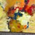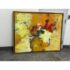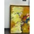 Design Plus Gallery presents an Original Abstract Painting by Linda French, Signed on Lower Corner. The vibrant art piece is rich with colors of gold, red, yellow, and splashes of blue. There is a botanical quality to this untitled piece that jumps out to the viewer. Surrounded by nature, Linda French is inspired to paint the essence of the natural beauty around her. The artist has signed the piece in the lower corner and the stretch canvas is inset of a golden frame. Is in good condition with minimal wear for its usage. Made in USA.