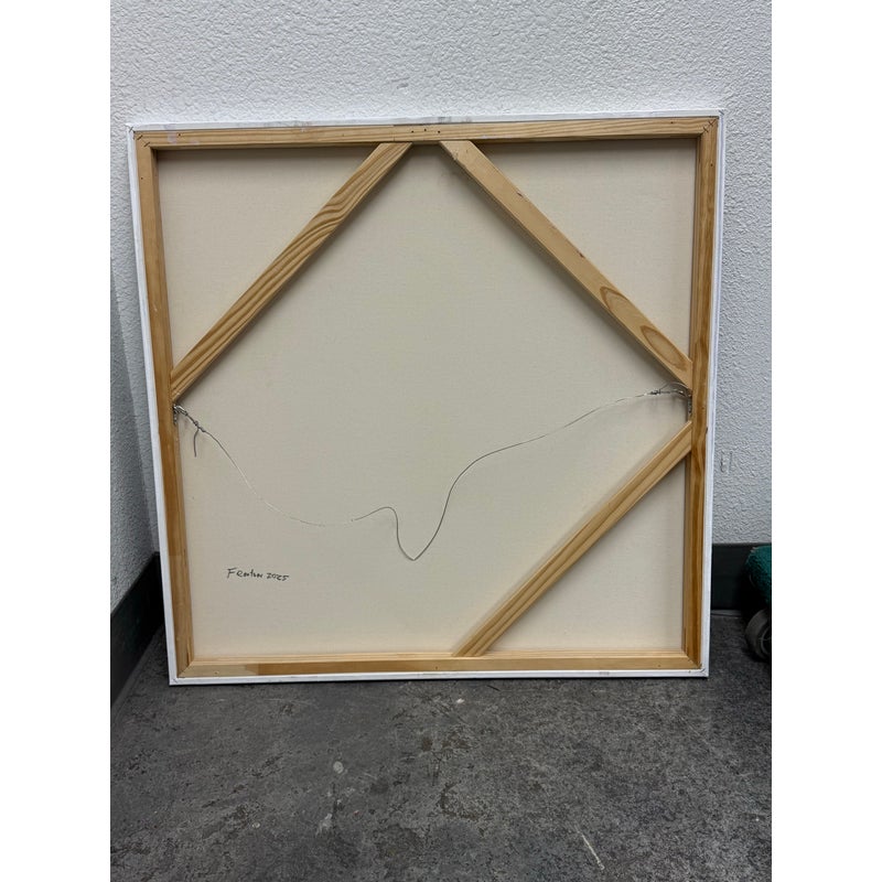 Design Plus Gallery presents an Original Untitled Abstract Painting by Artist John Fenton. Created in 2025, this medium scale artwork will fit into most rooms and enhance your wall with its vibrancy, making your room come to life. It has tones of that mimic the sky with gray, blues with white present. It has stretcher bars to hang easily. It is in good condition with signature and date found on its backside.