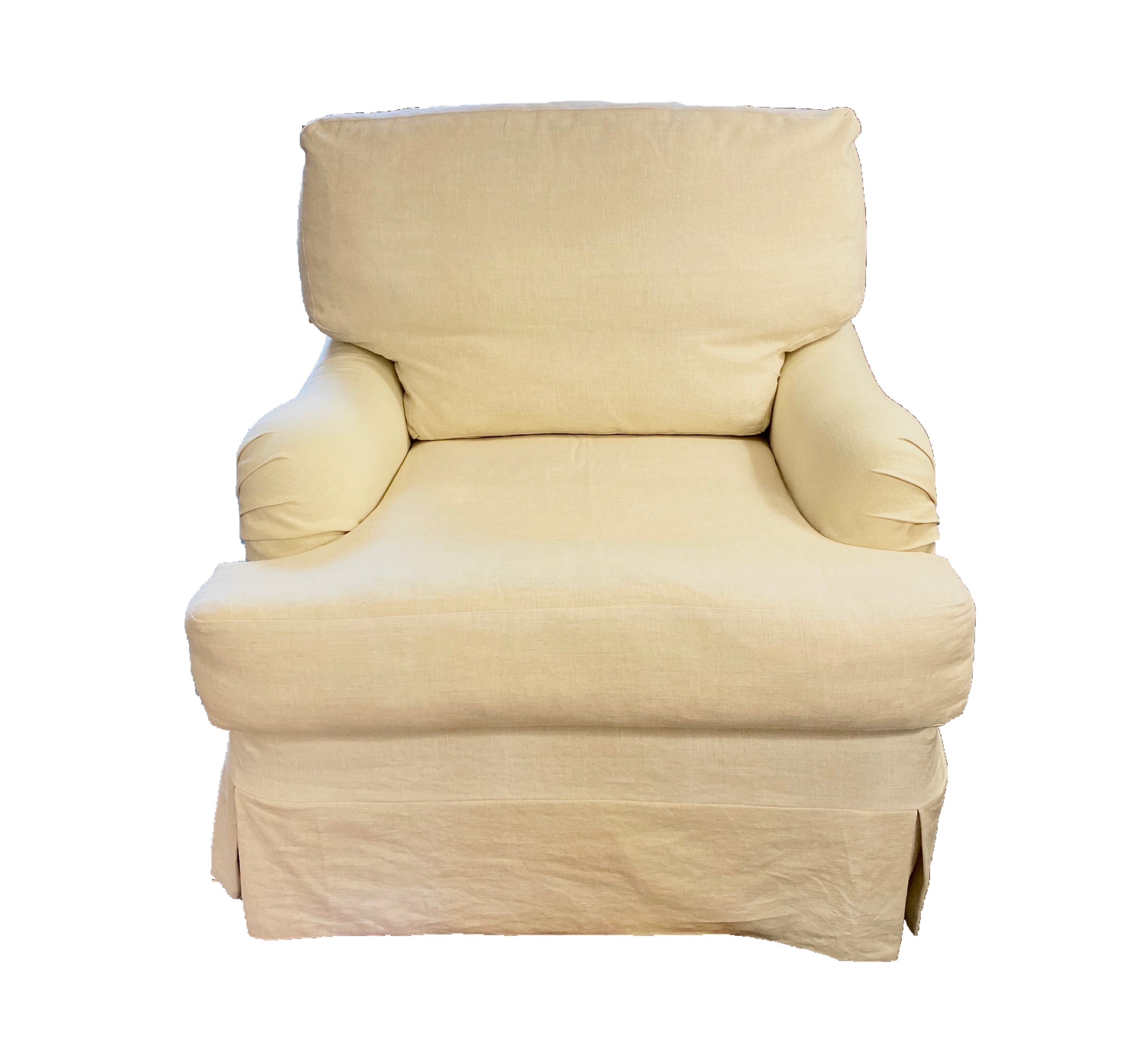 Design Plus Gallery presents a Cisco Bros Slipcover Armchair. Charleston Chairs. The traditional pair are slipcovered in a natural linen with dressmaker details, camouflaging sun-damaged original fabric. Constructed of FSC hardwoods and made in the USA. All Cisco Brother products are flame retardant and formaldehyde glue free.