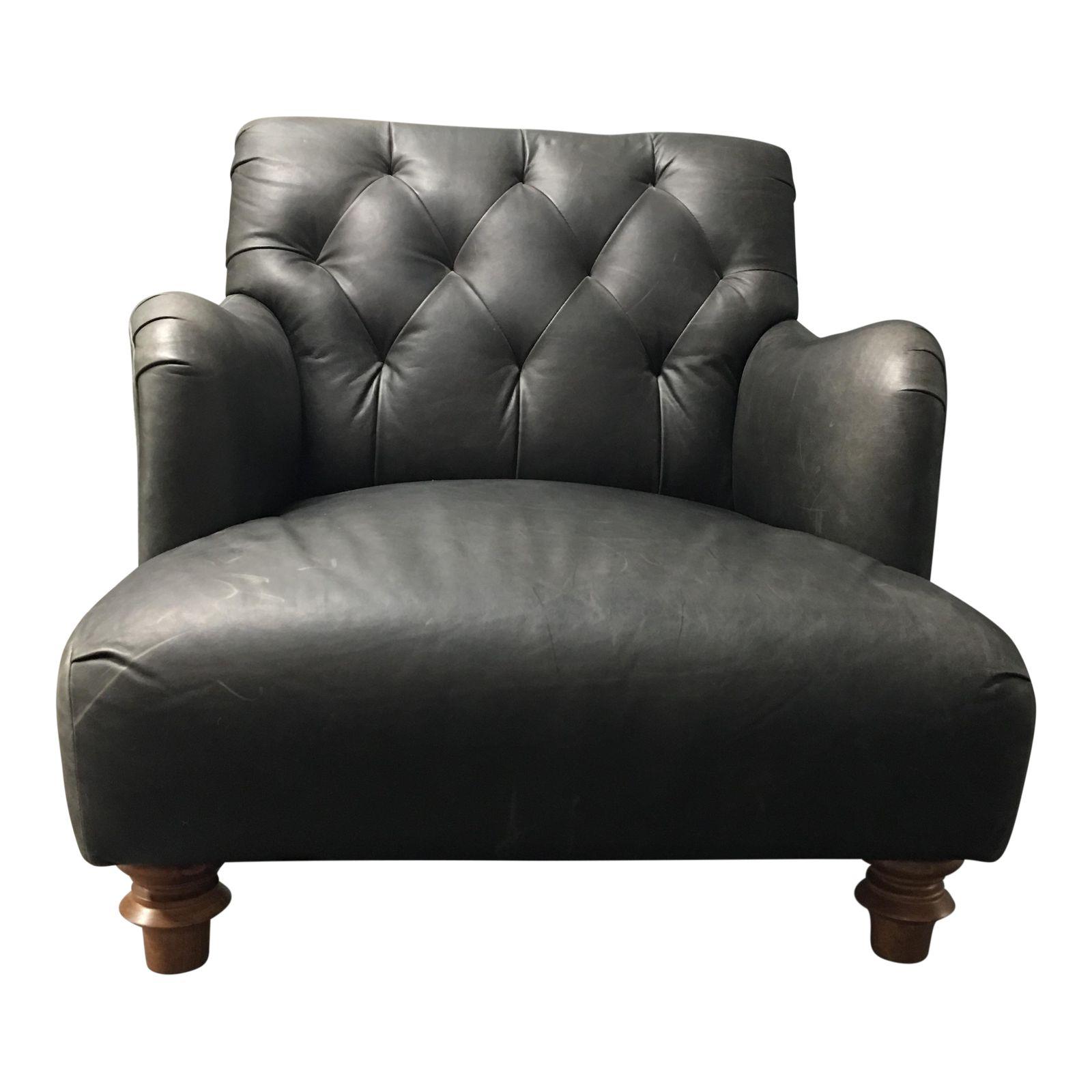 Cisco Furniture Acacia Charcoal Leather Arm Chair. Original Price: $2,488.00