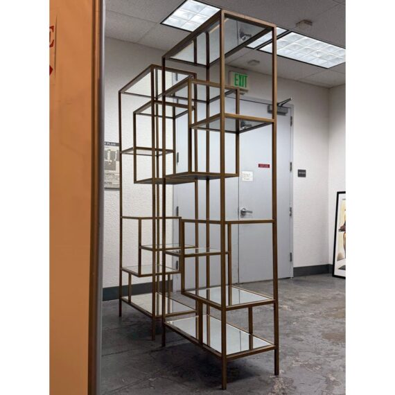 Design Plus Gallery presents a Pair of Haarlem Shelving Unit from Coco Republic. The shelves are made from powder-coated metal frame with glass shelves. The Haarlem shelving has an asymmetrical design that feels ultra-modern. Whether you’re displaying decorative objects or storing everyday essentials, this shelving unit is where functionality meets beauty. They are in good condition for their overall usage.
