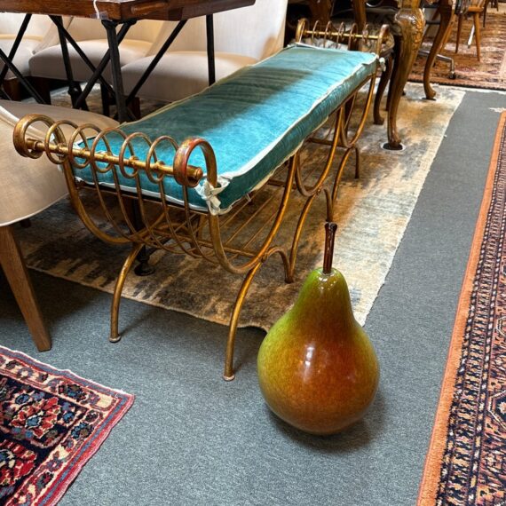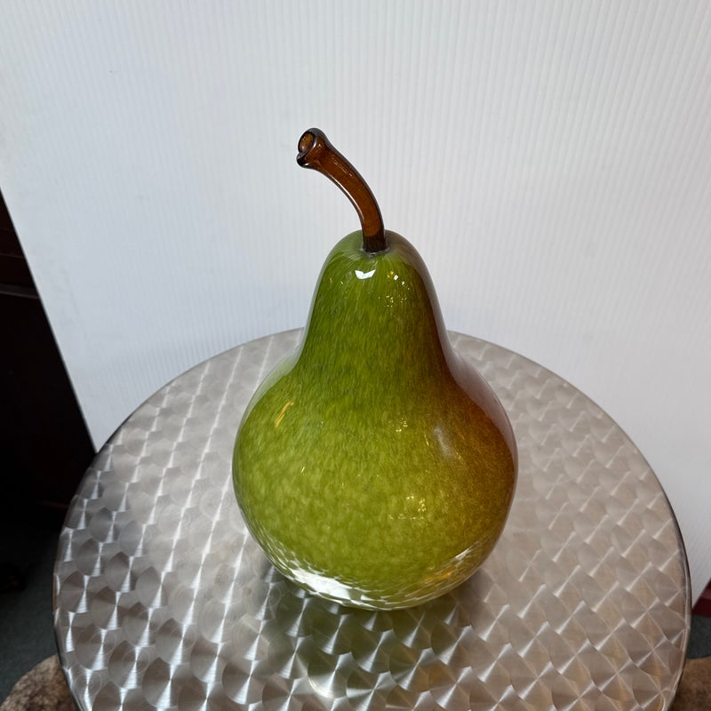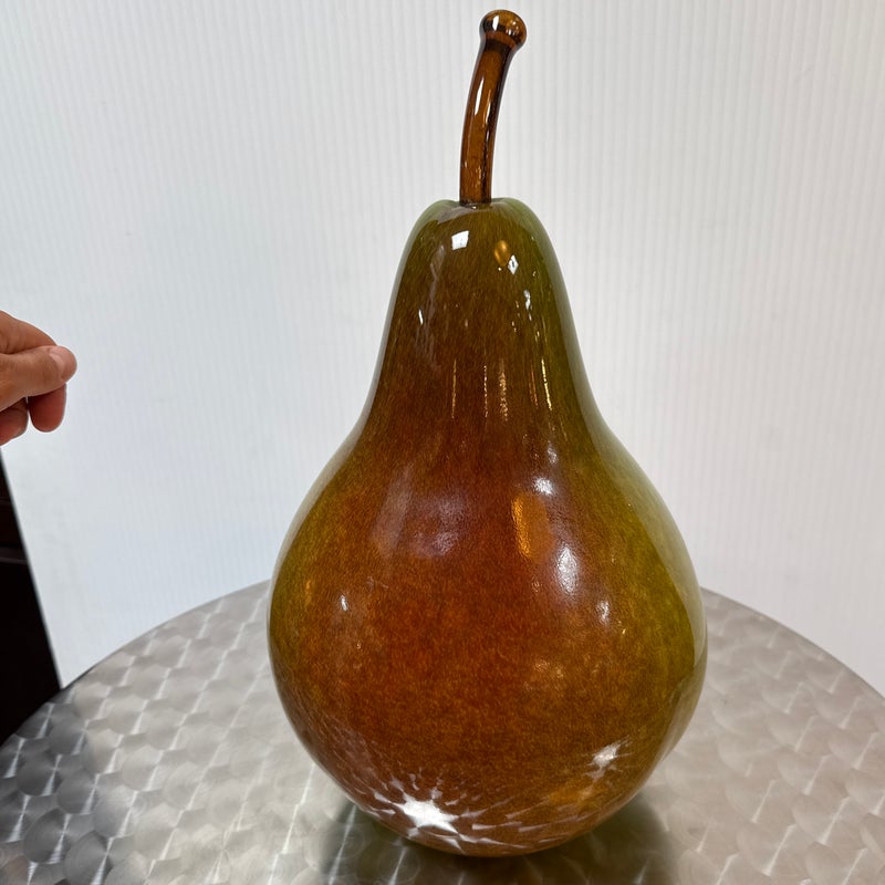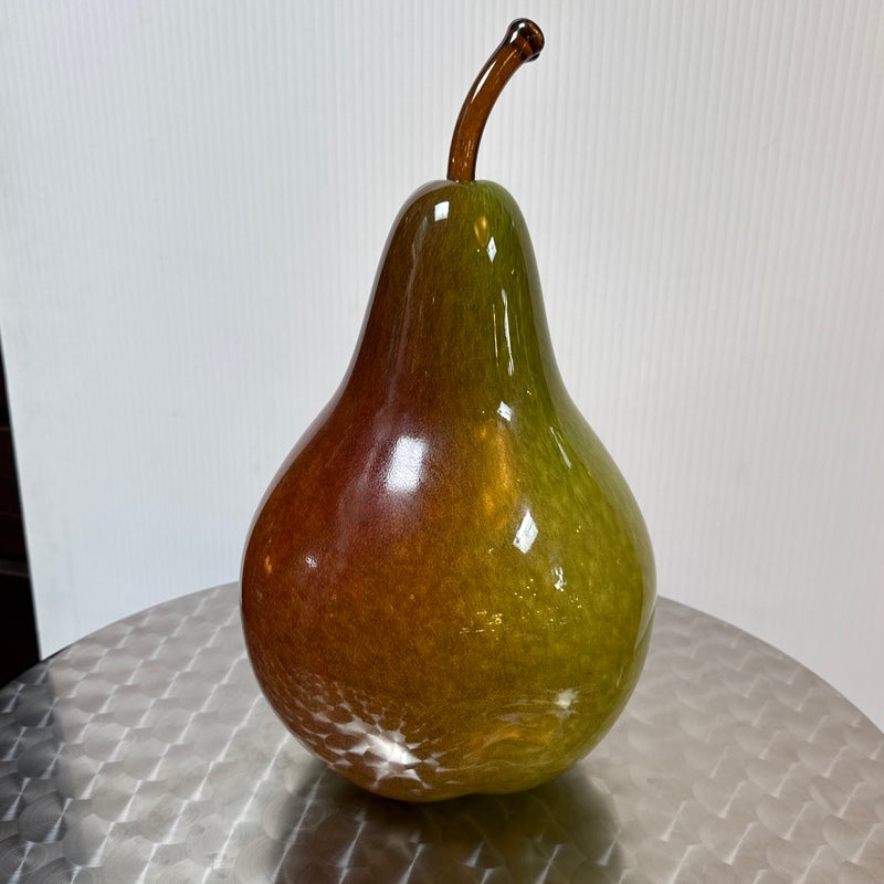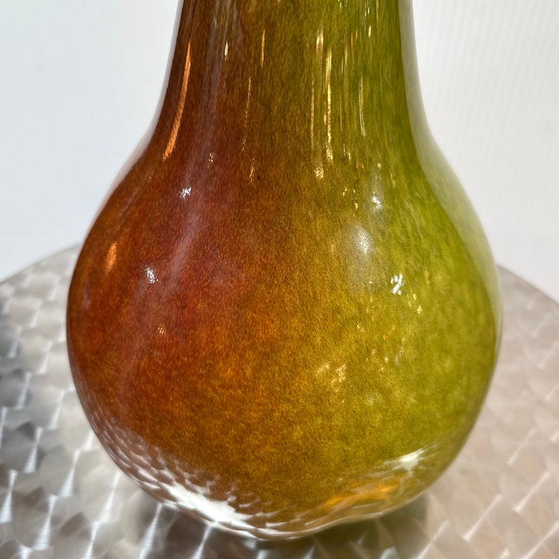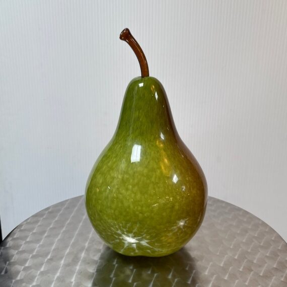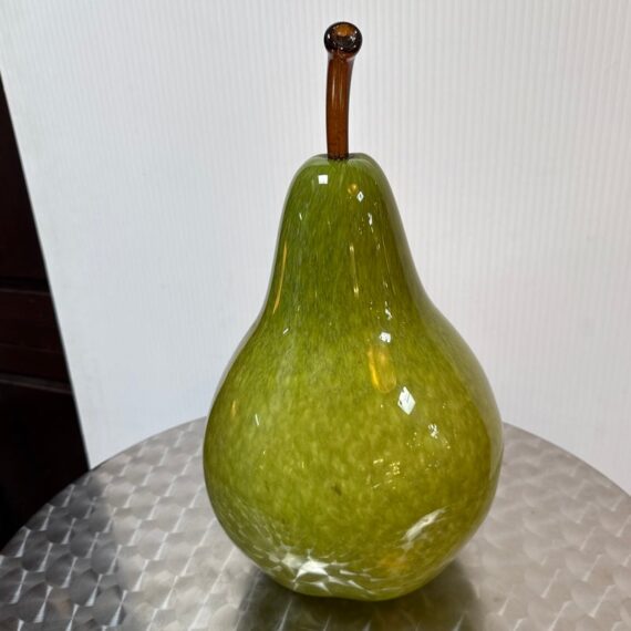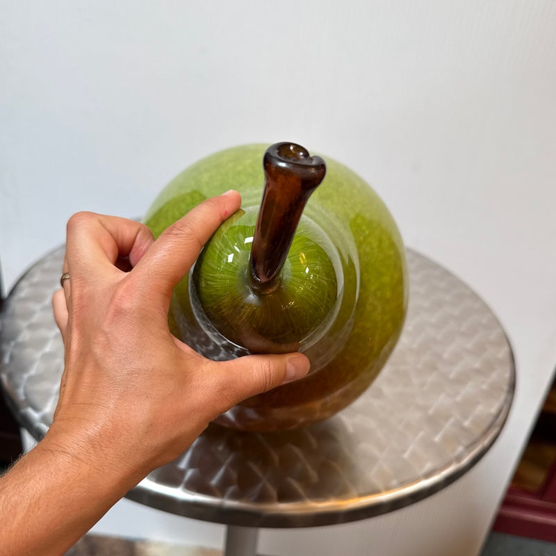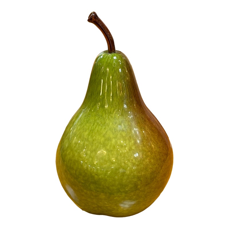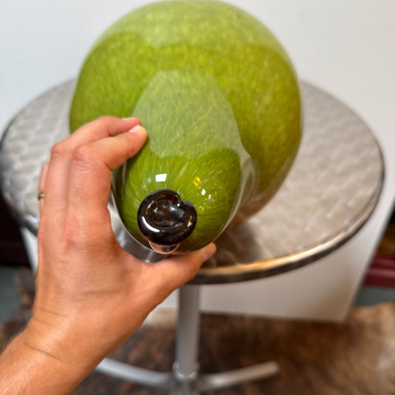 Design Plus Gallery presents the Larger-Than-Life Hand Blown Glass Pear from Cohn-Stone. Pears — the longevity and fruitfulness of pear trees were thought to give strength to marriage. The pear is considered a symbol of everlasting affection between a “pair” of people who are truly in love. This Giant Green Comice is a perfect wedding or anniversary gifts. Is in good showroom like condition. Made in the USA.