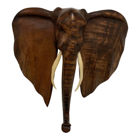 Design Plus Gallery presents an Africana House Elephant Wall Ornament. Walnut stain gives rich detailing and depth to the carving.