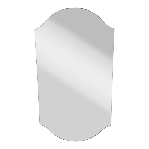 Design Plus Gallery presents a Contemporary Beveled Wall Mirror. A beveled edge wall mirror, designed with elegant curves at the top and bottom, and with sleek straight sides for a modern yet sophisticated look. This versatile mirror can be mounted both vertically and horizontally, allowing you to customize and style it to best fit your space and decor. Whether placed in your bedroom, living room, or entryway, this beveled edge wall mirror is sure to make a statement and elevate the ambiance of your home. In good condition, minimal wear.