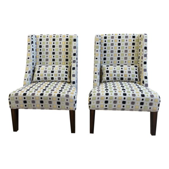 Contemporary Bold Hollywood Regency Wingback Chairs – a Pair