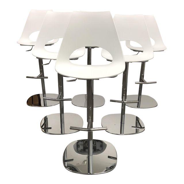 Contemporary Bontempi Casa Shark White Plastic and Chrome Adjustable Bar Stools – Set of 6. Original Price: $4,062