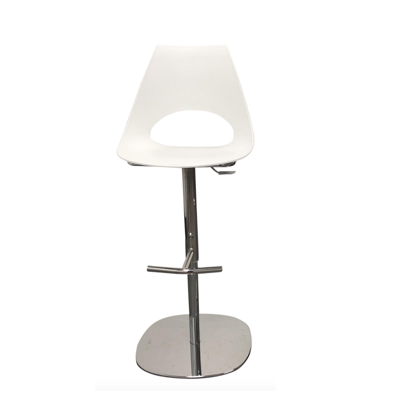 Contemporary Bontempi Chrome and White Plastic Adjustable Shark Bar Stool. Original Price: $677