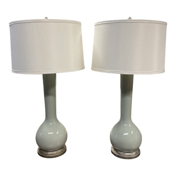 Contemporary Celedon Bottleneck Table Lamps – a Pair