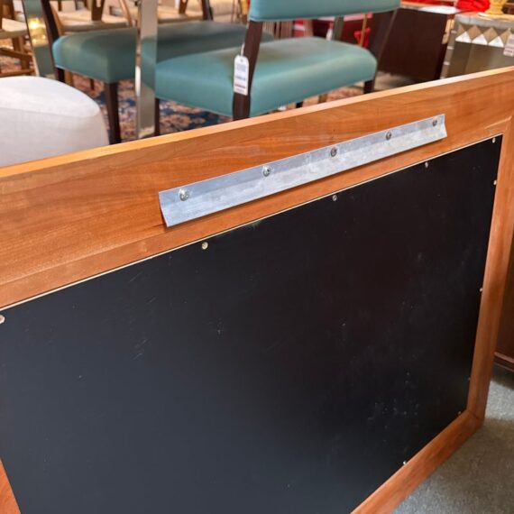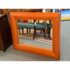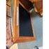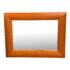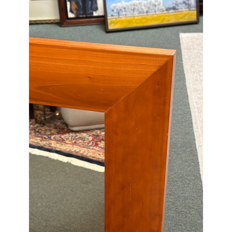 Design Plus Gallery presents a Wall Mirror with a Cherry Wood Stain. The style is contemporary that also leans towards Arts & Crafts Deco Style due to the popularity of that tone. Even though it has a smooth surface with elegant framing it reads rustic and can adapt into a variety of homes. It is positioned to for hanging horizontally with a metal bracket bar on the backside. It is in good overall condition for its usage.