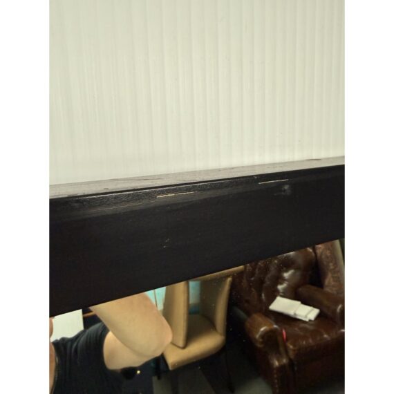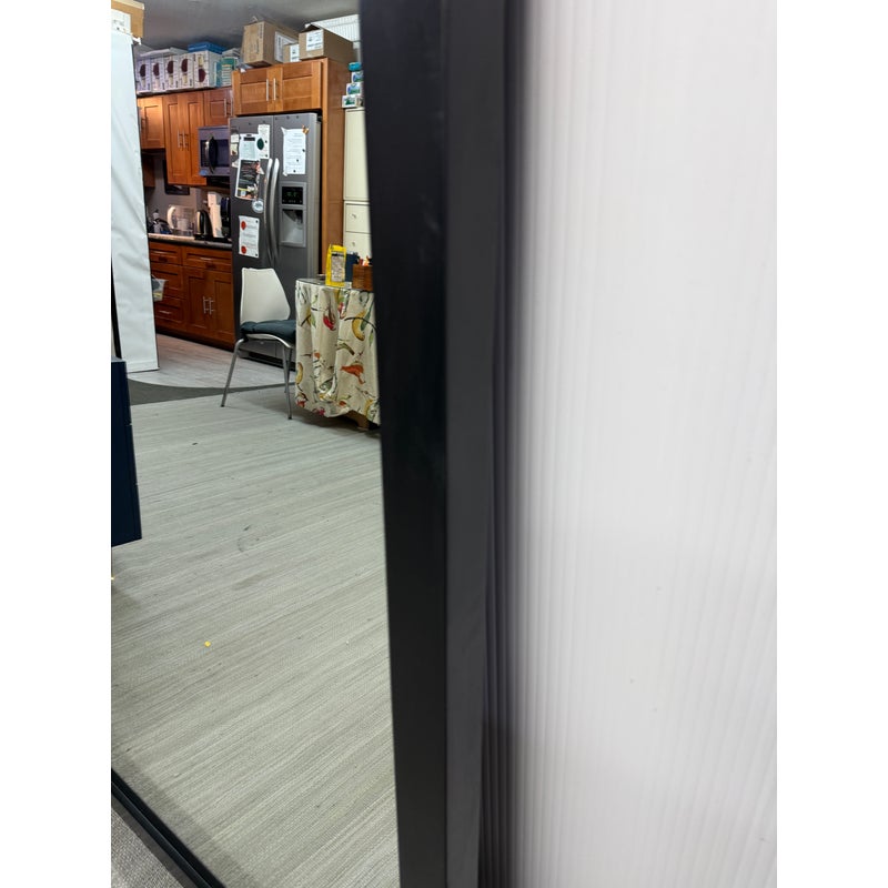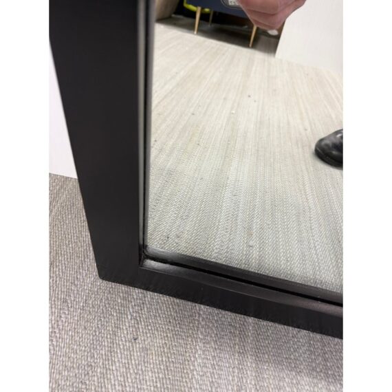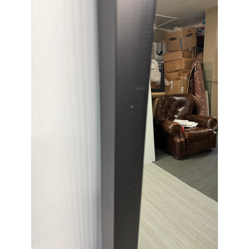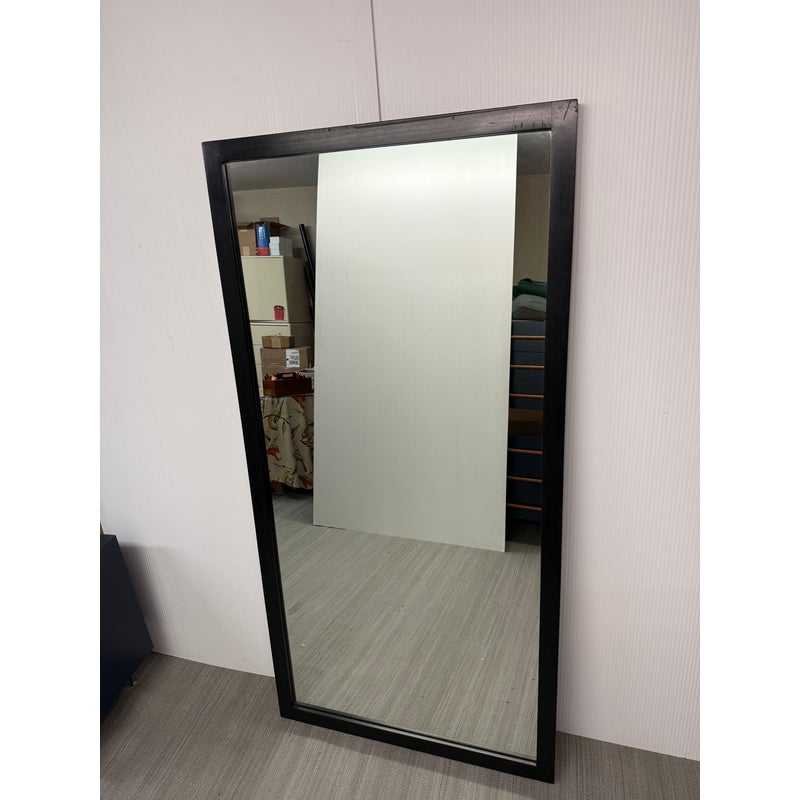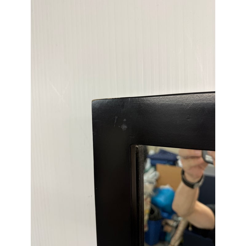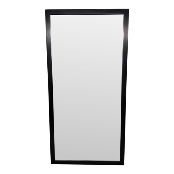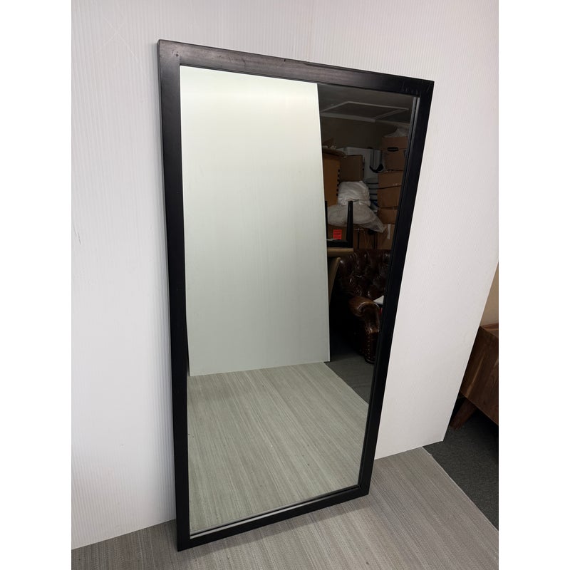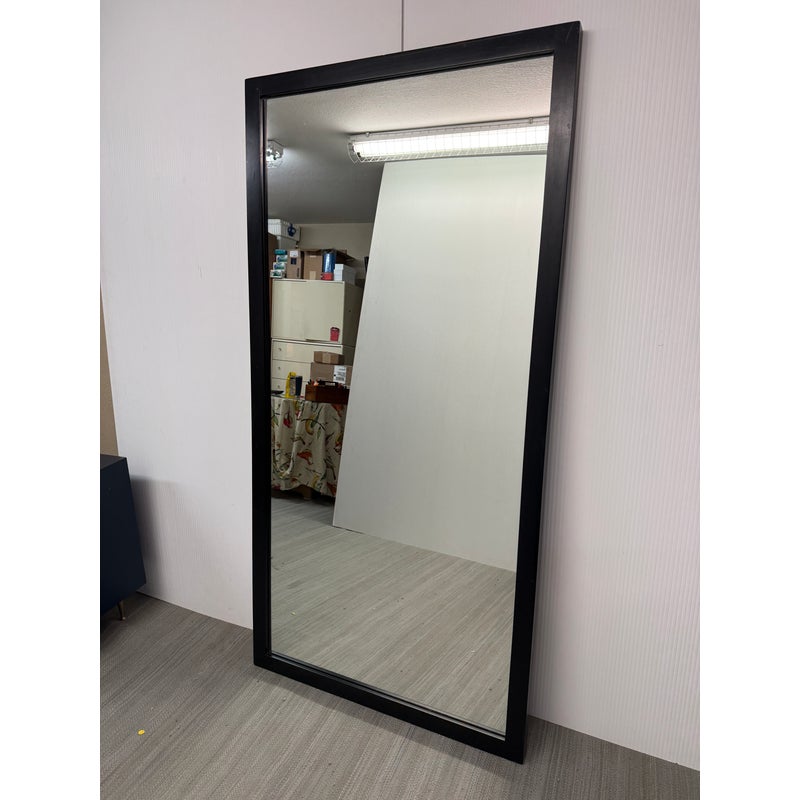 Design Plus Gallery presents a Contemporary Floor Mirror. Simplicity itself, the full length mirror is lightly embellished with dark stained frame allow maximum visual review. Visible wear, nicks and scratches on frame; condition is fair for age and use.