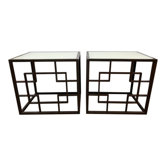 Contemporary Geometric Metal + Glass Side Tables, a Pair
