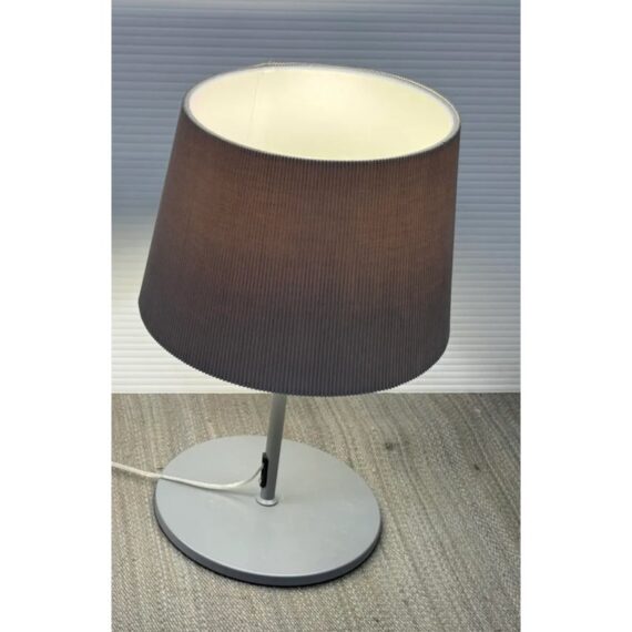 Design Plus Gallery presents a Monochromatic Table Lamp + Shade. Neutral gray all over, the pleated shade creates ambient light to desk, side table or nightstand. The switch is found on the cord. Light surface wear; condition is good.