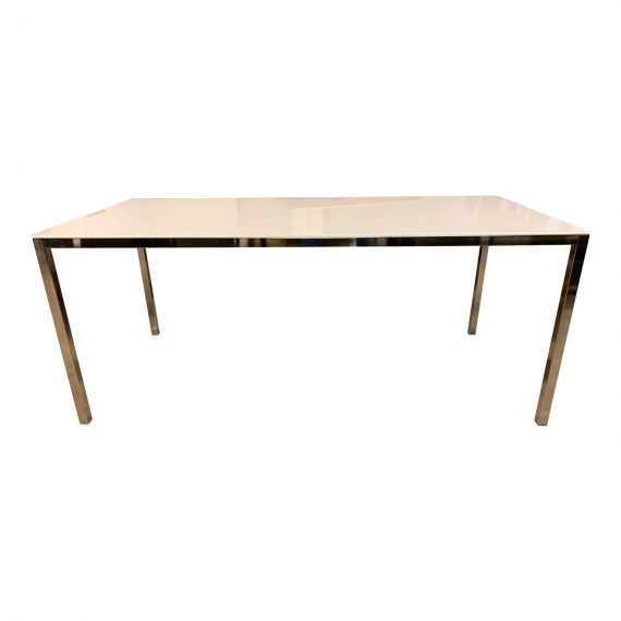 Design Plus Gallery presents a Torsby Table. A high-gloss surface reflects the light and gives the table a vibrant look. The sturdy chrome frame makes it shine. Suitable as a Dining Table or Conference Table.