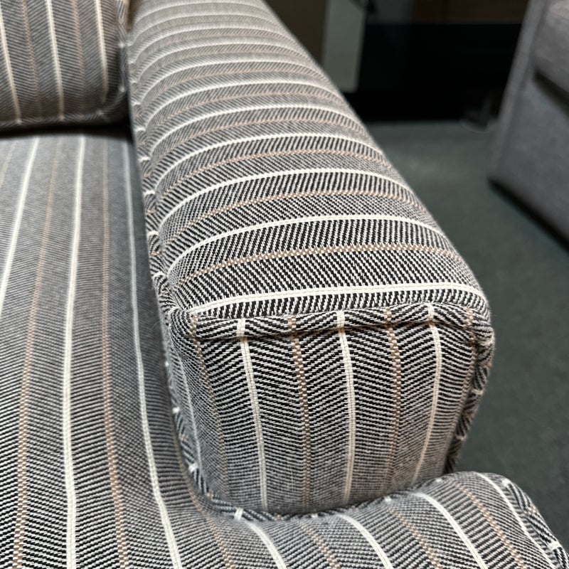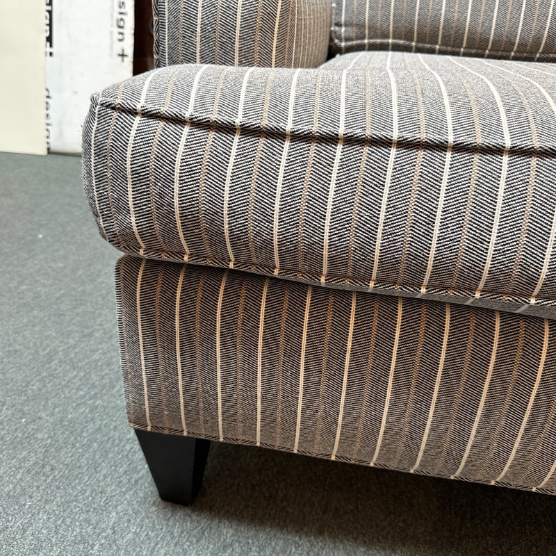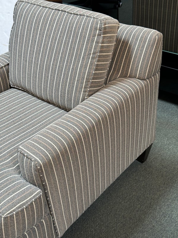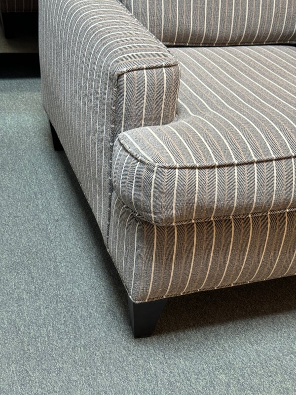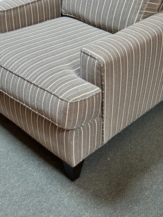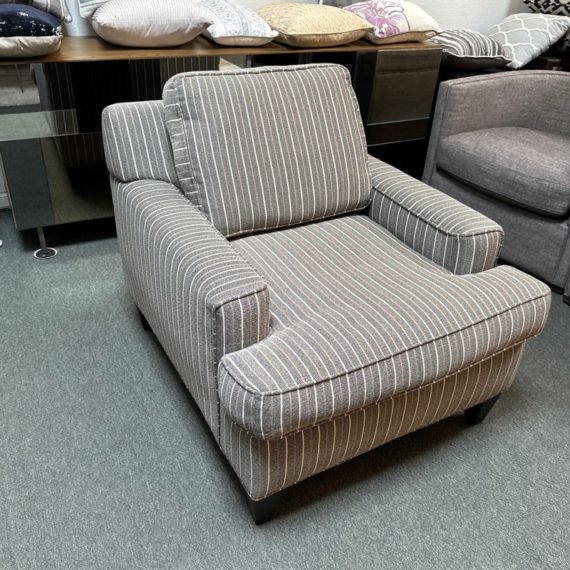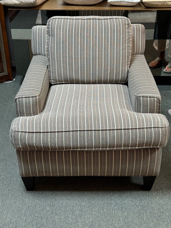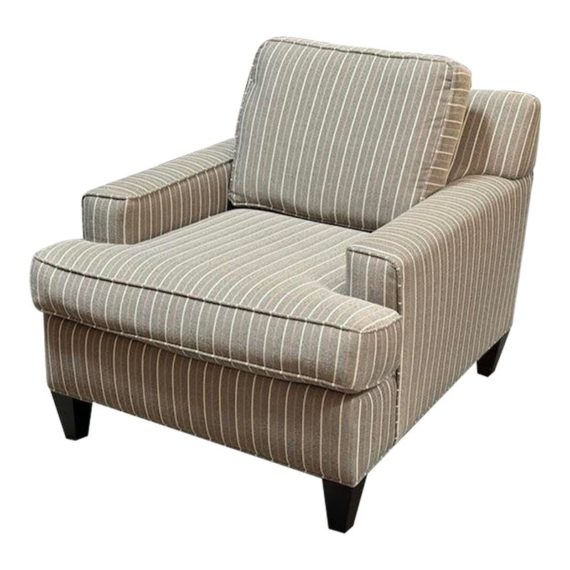 Design Plus Gallery presents a Henry Accent Chair by Cort Furniture. Inspired by sophisticated and swanky menswear pinstripe, the chair has style and comfort to spare. Will help set the tone of your home or office space and its transitional design offers enough versatility to go with many different decors. In good condition, visible and minor wear from use + age.