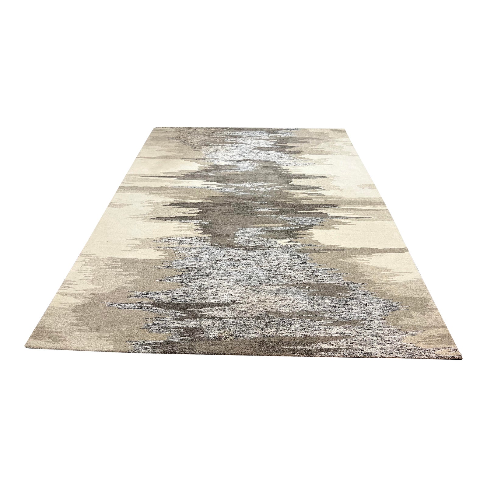 Design Plus Gallery presents a 9ft x 11ft 8in Crate & Barrel Birch Neutral Wool-Blend Abstract Rug. This eye-catching rug celebrates the variegated tones and papery bark of birch trees in an abstract pattern that’s warm and organic. Hand tufted by skilled artisans in India, the rug blends tonal grey, taupe and cream wool-blend yarns in a cut and looped design. For cleaning, we recommend using a professional experienced in cleaning fine rugs, Shedding will occur; vacuum weekly to manage. To avoid damage to your rug, always vacuum with the beater bar off, using a high pile setting. Minor wear. Made in India.