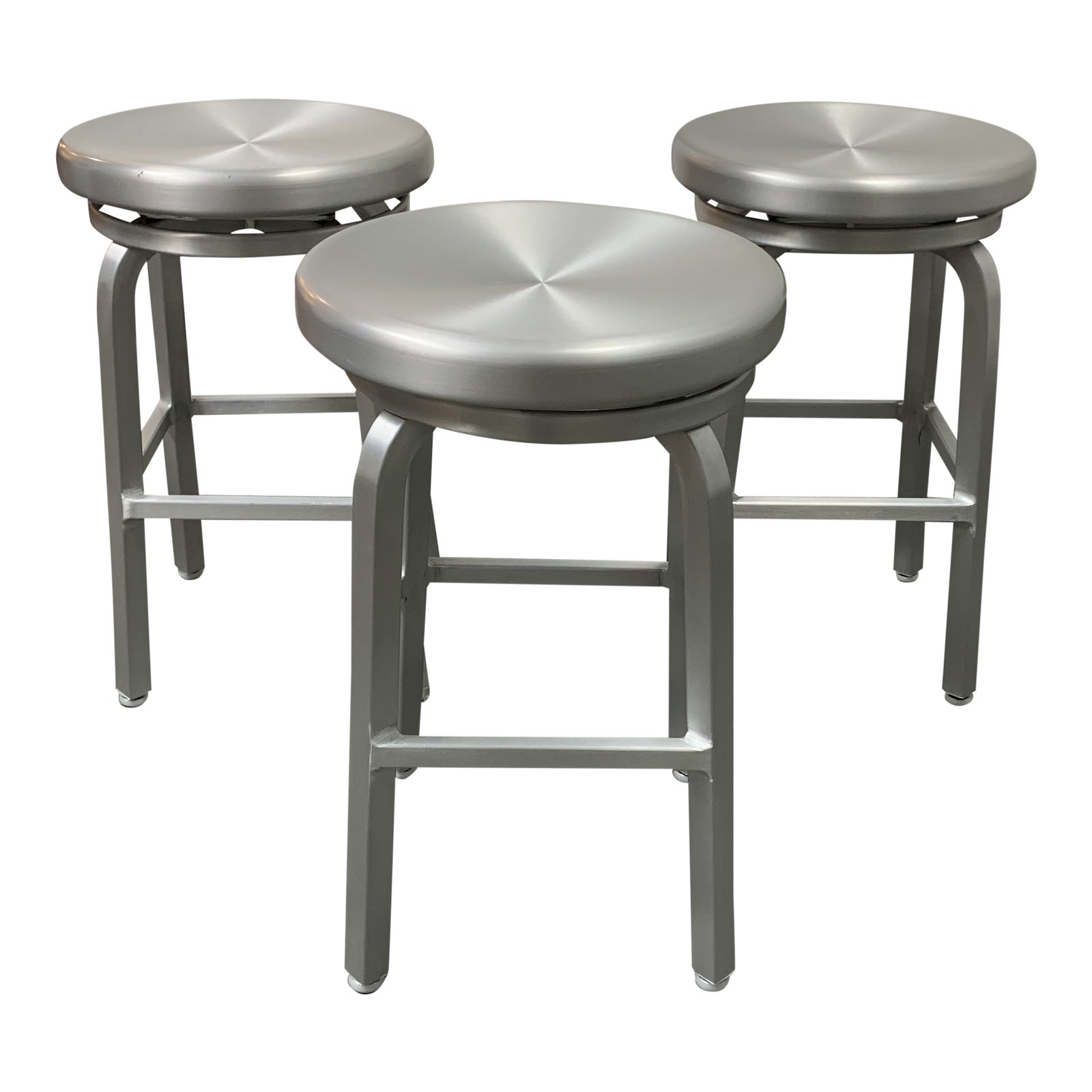 Crate & Barrel Brushed Aluminum Swivel Counter Stools – Set of Three