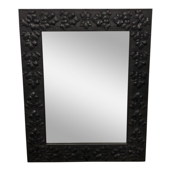 Crate & Barrel wall mirror. The frame has been clad in Metal with applied leaves also in Metal. It has a matte Black finish. It is further enhanced by a rope pattern around the perimeter of the mirror. The mirror has a very three dimensional quality.