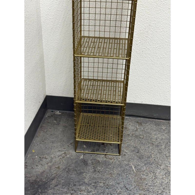Design Plus Gallery presents a On the Grid Gold Bookcase from Crate & Barrel. This was created for the brand Kids Diffusion Collection.The shelf was inspired by the functionality of steel lockers, and designed to fulfill all your elementary age storage needs. It is made with sturdy, powder coated steel construction in a gold finish. In good condition, minimal wear. This style has been discontinued by the brand.