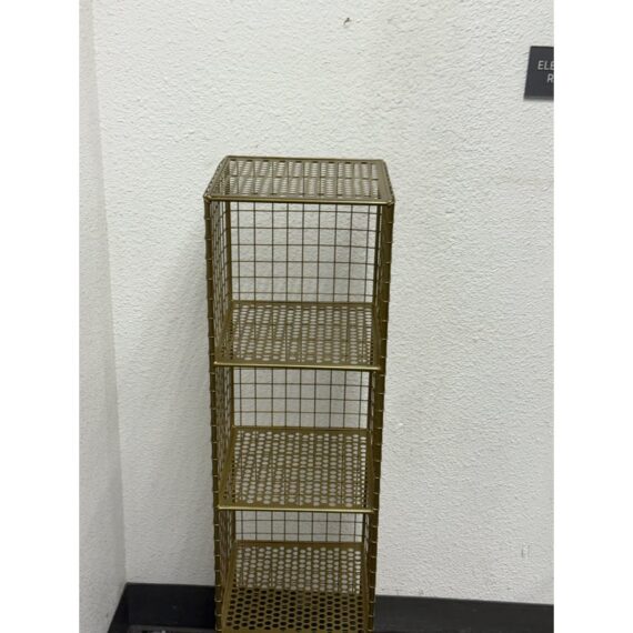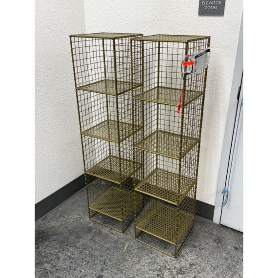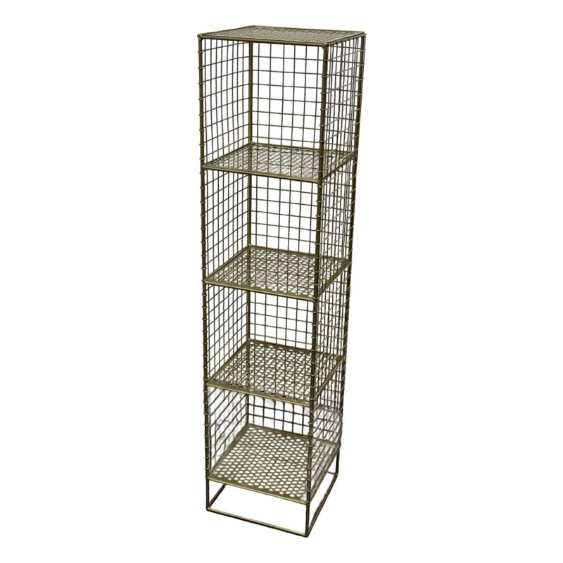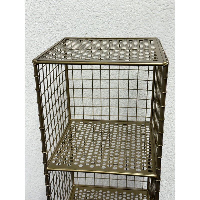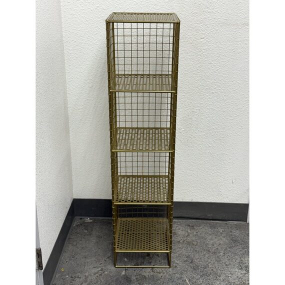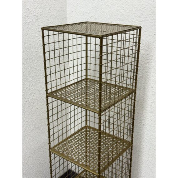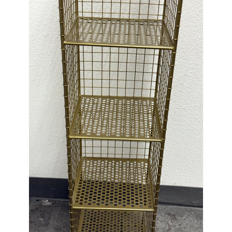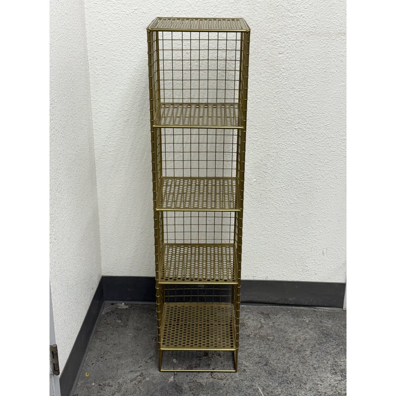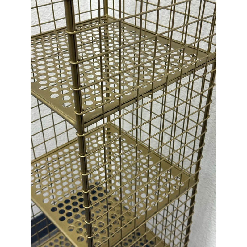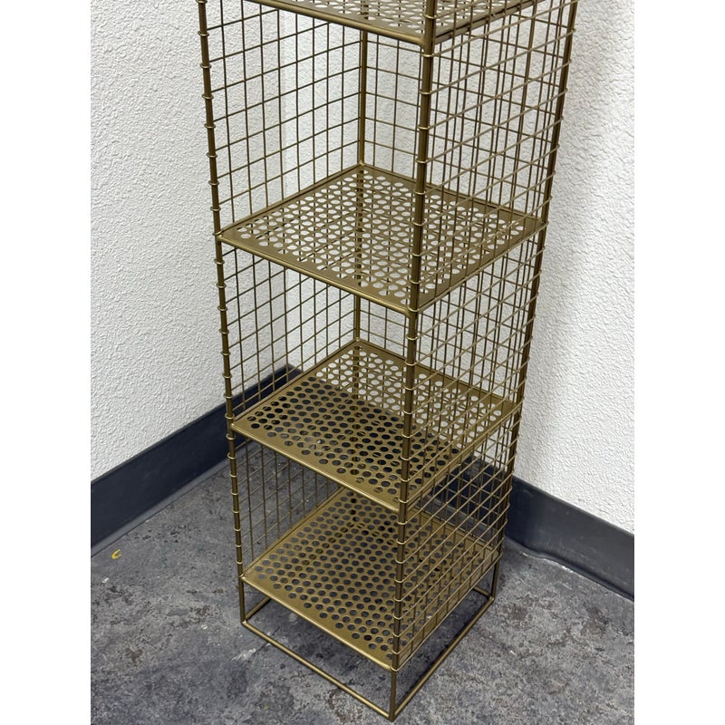 Design Plus Gallery presents a On the Grid Gold Bookcase from Crate & Barrel. This was created for the brand Kids Diffusion Collection.The shelf was inspired by the functionality of steel lockers, and designed to fulfill all your elementary age storage needs. It is made with sturdy, powder coated steel construction in a gold finish. In good condition, minimal wear. This style has been discontinued by the brand.