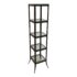 Design Plus Gallery presents a Steel & Glass Etagere from Crate & Barrel. The stacked shelving is the perfect blend of modern + industrial. It has an impactful aesthetic, a small footprint, and function. There are five glass slab shelves that are all equal in size, depth. The frame is finished in a bronze tone and is elevated on slightly splayed legs. Overall, the etagere is in good condition, visible and minimal wear consistent with age + use.