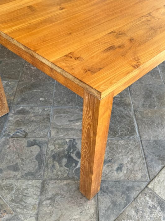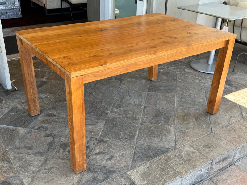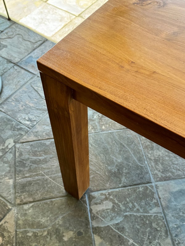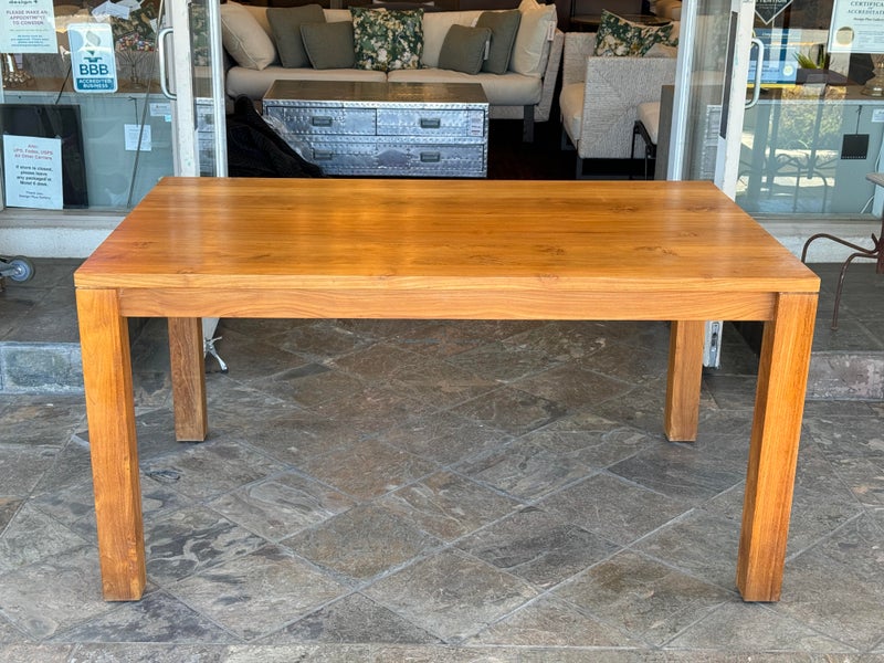 Design Plus Gallery presents an Indoor/Outdoor Dining Room Table from Crate & Barrel. The table is an ideal choose in any modern home with its simple design style and lovely honey brown finish. Teak wood allows it to be durable enough for outdoors but also refined enough for your eat-in kitchen. Is in good condition with wear that is consistent with its age + use.