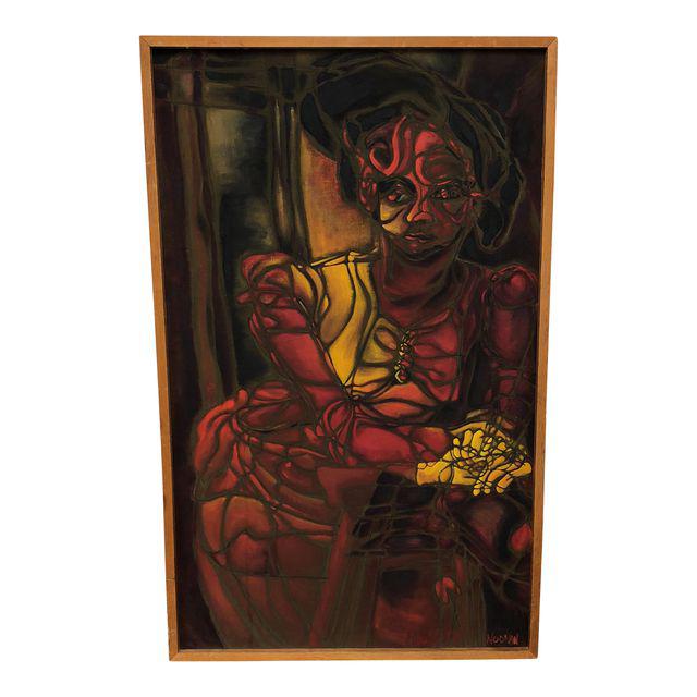 Design Plus Gallery presents an original Painting on canvas. The painting is not quite Cubism but the image is fractured. It is framed, but it would benefit greatly from a replacement. The piece is signed Noonan