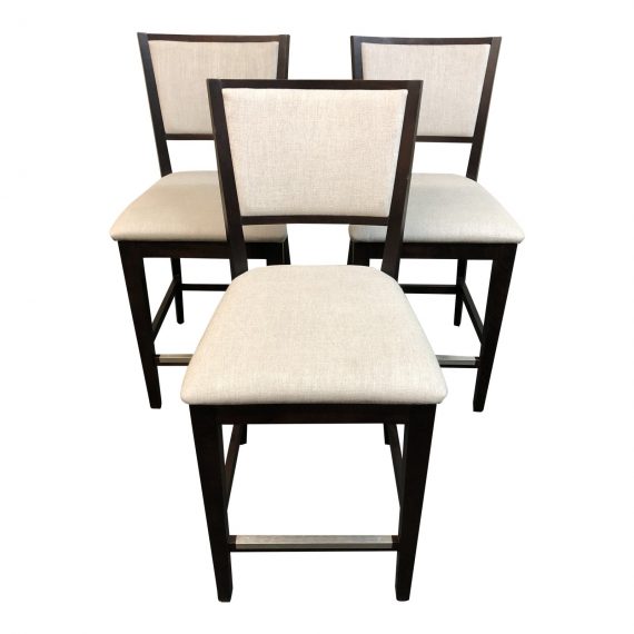 Design Plus Gallery presents a trio of Custom Counter Stools by Canadel. Rich espresso finished hardwood frames contrasts nicely with the natural linen-look upholstery. Clean lines and neutral tones allow the set to work beautifully in many settings.