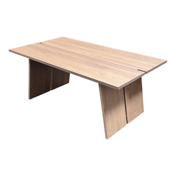 Design Plus Gallery presents a Custom Design Ash Wood Dining Table in a Pecan Finish. This table is characterized by sharp, graphic angles that give them a modern and edgy look. The overall form of each piece is sleek and striking, making a bold statement in any room. Crafted from solid ash wood, these pieces are not only visually appealing but also sturdy and durable. Its expert craftsmanship, attention to detail, and high-quality materials make it a standout collection that will elevate any living space. Made in USA.