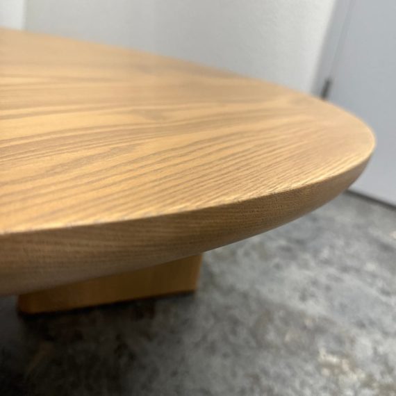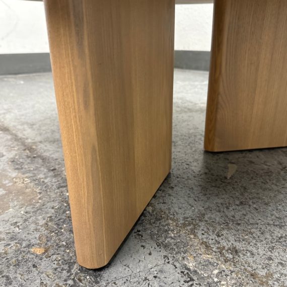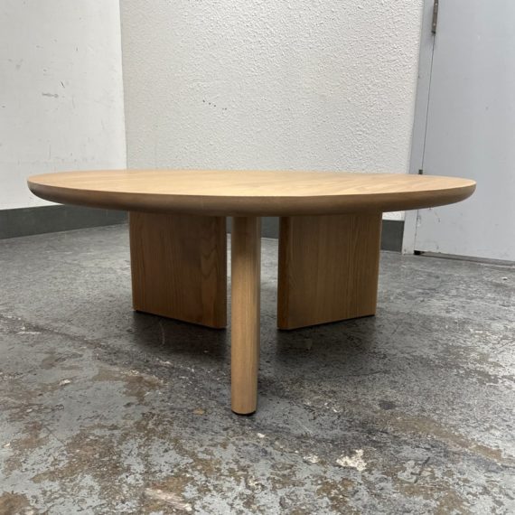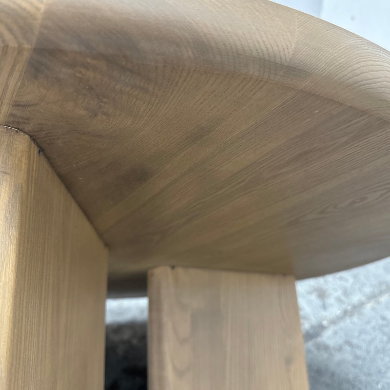 Design Plus Gallery presents a Natural Driftwood Finish Coffee Table. Lends a substantial presence with wide plank tripod legs, showcasing clean lines and an artful shape. Handcrafted with domestically-sourced solid ash, the natural wood grain. In good showroom like condition.